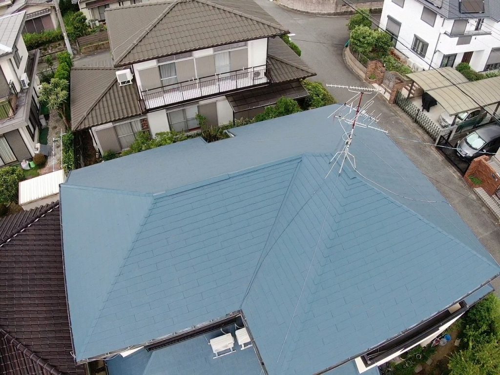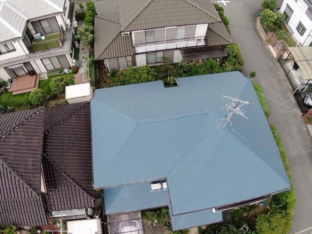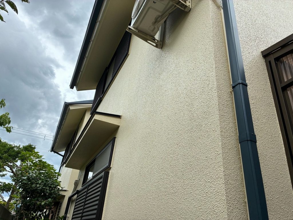 今回の点検では、外壁や屋根の塗膜や防水層の状態を丁寧に確認しました。その結果、ひび割れや剥がれ、変色といった目立つ劣化は見られず、施工時の美観と耐久性がしっかり保たれていることを確認できました。特に外壁のシーリング部分や屋根材の塗膜の状態も良好で、施工当初とほぼ変わらない状態を維持しており、安心してお住まいいただける状況でした。
