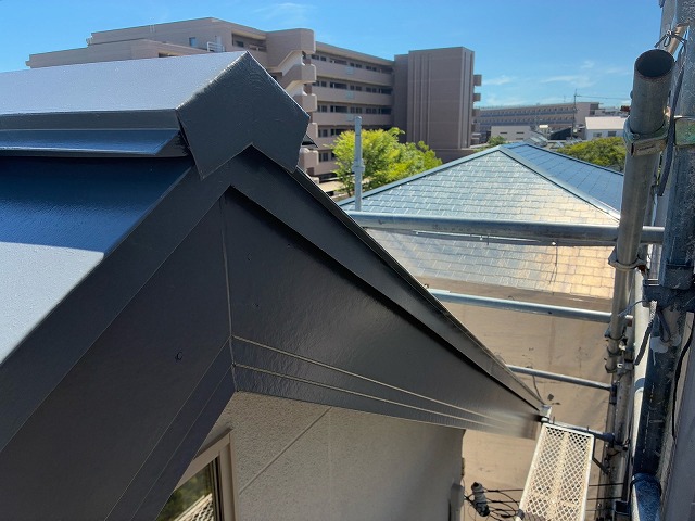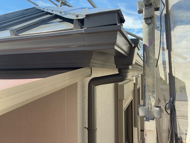 軒天、破風、雨樋などの付帯部も塗装しました。