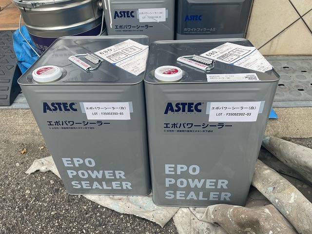 下塗り材「エポパワーシーラー」「ホワイトフィラーAⅡ」を塗布します。