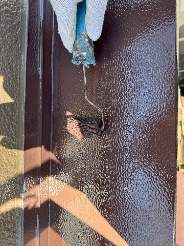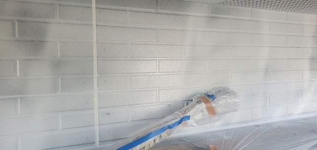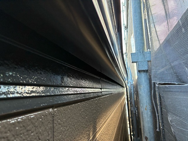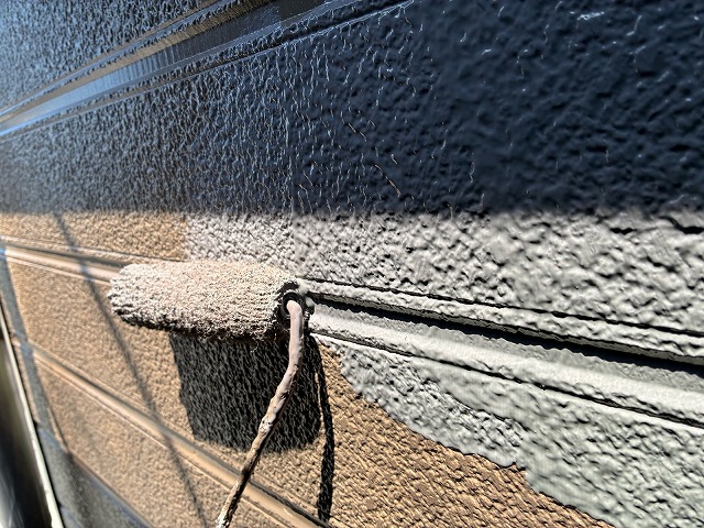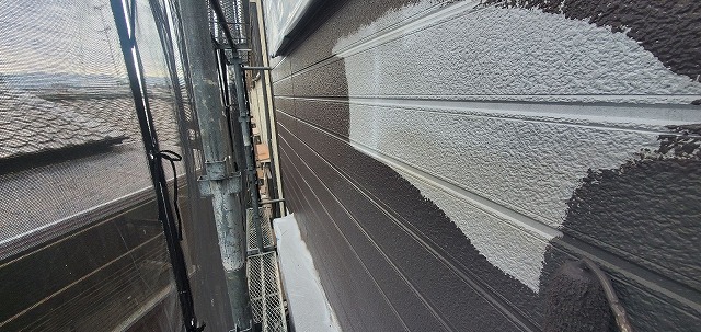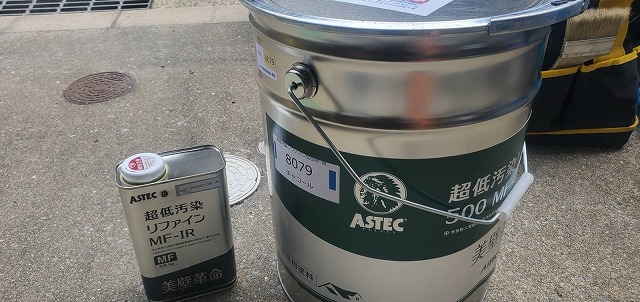 下塗り乾燥後、「超低汚染プラチナリファイン2000MF-IR」で中塗り、上塗りをして外壁塗装の完成です。