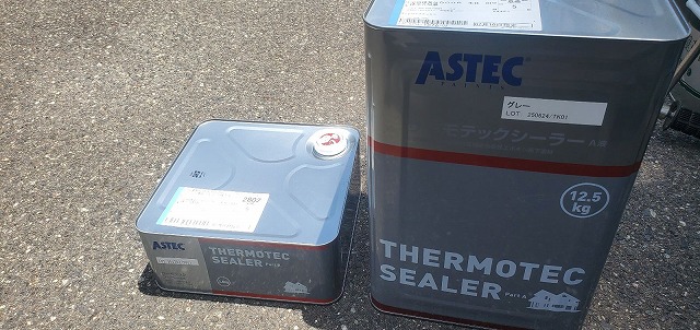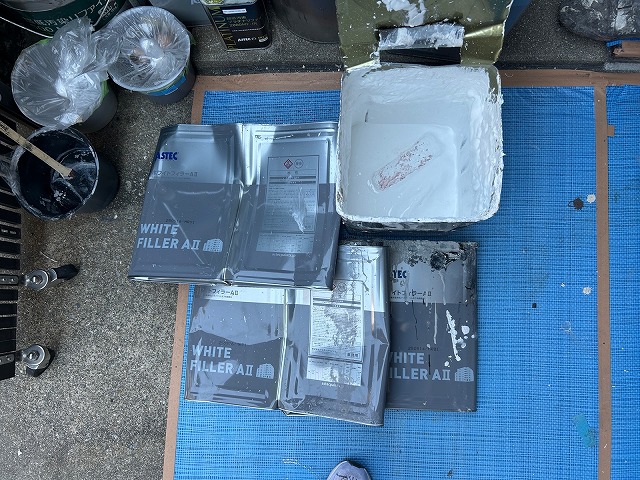 下塗り材「エポパワーシーラー」「ホワイトフィラーAⅡ」を塗布します。