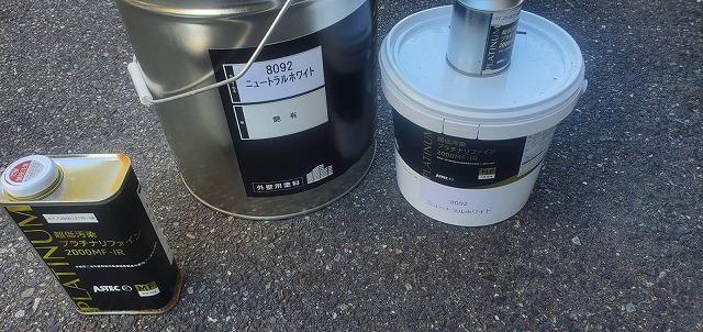 今回、外壁塗装でお選びいただいた色は「8074 アイアンバーグ 8092 ニュートラルホワイト」です。