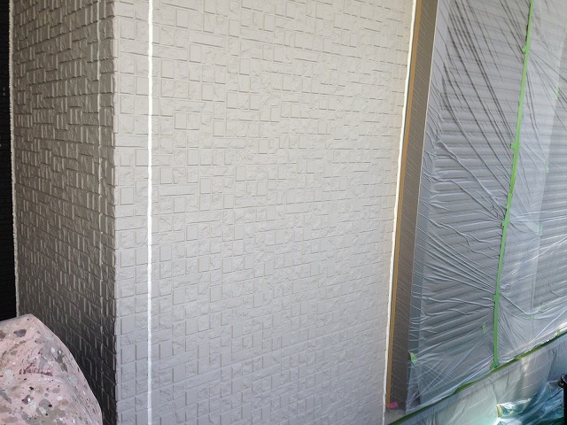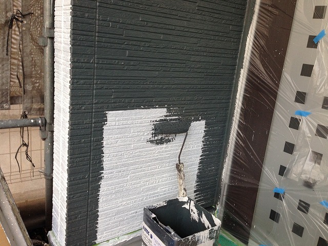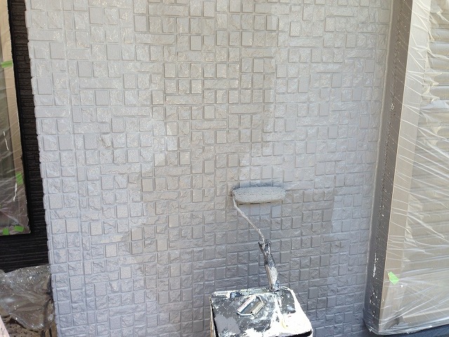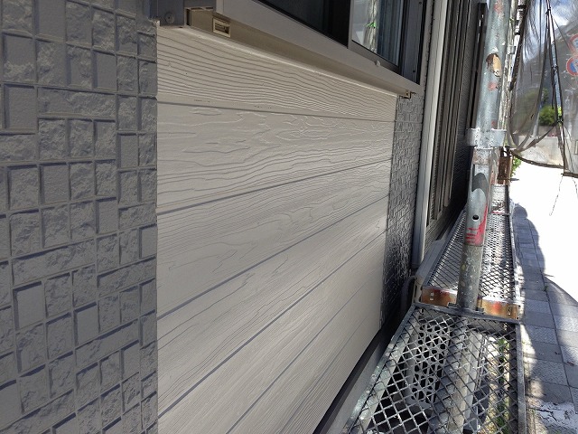 下塗り材乾燥後、「超低汚染プラチナリファイン2000Si-IR」で中塗り、上塗りをして外壁塗装の完成です。