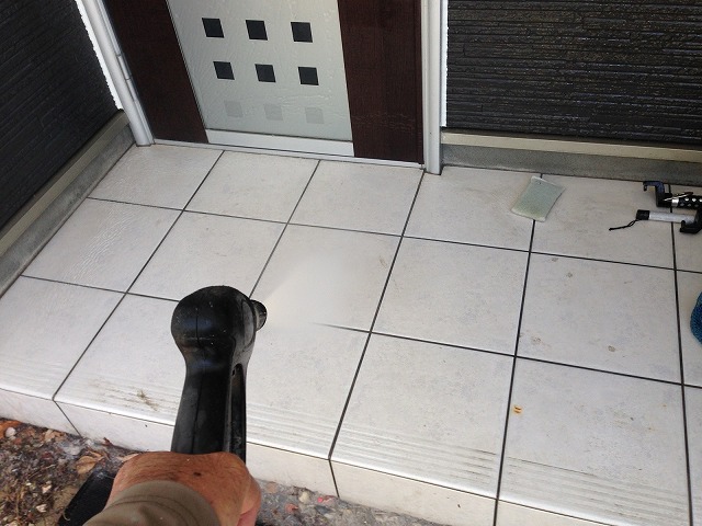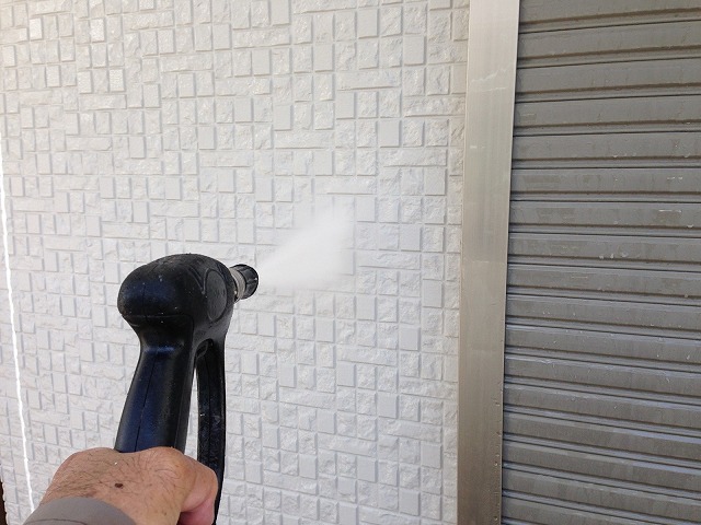 高圧洗浄機を使用してコケや藻、カビなどの汚れを落とします。