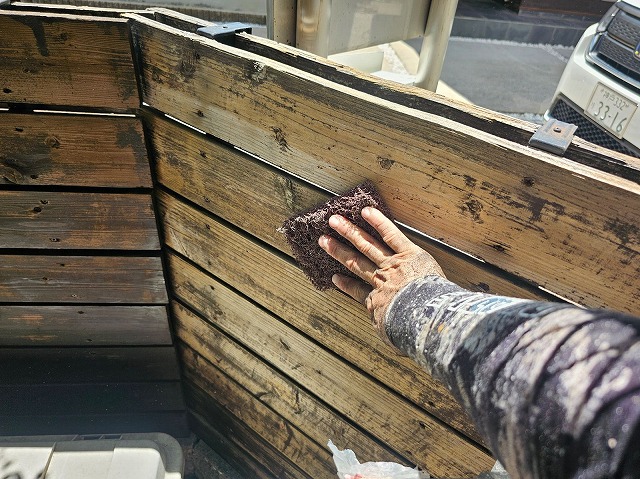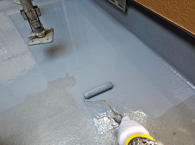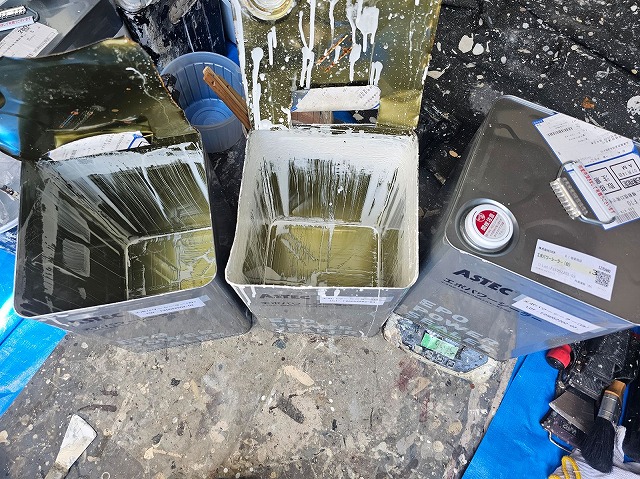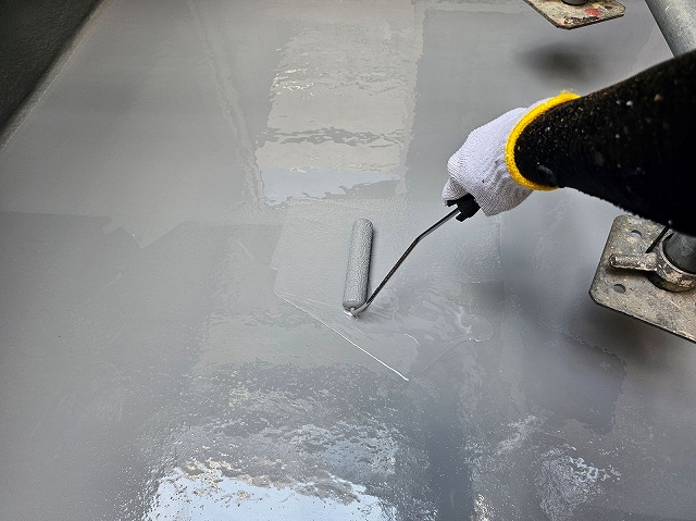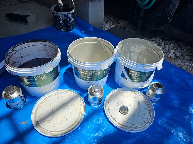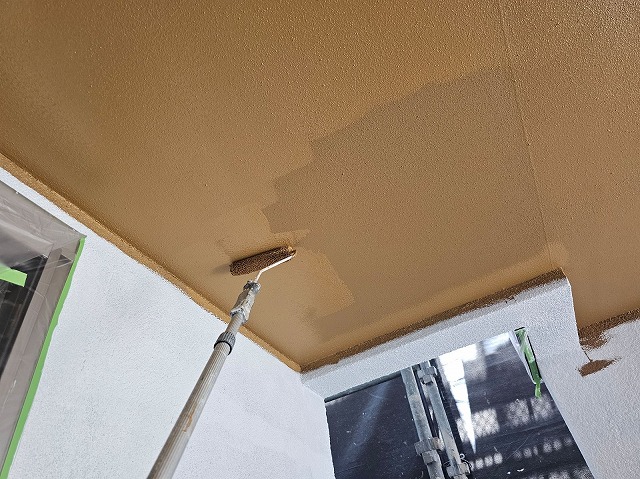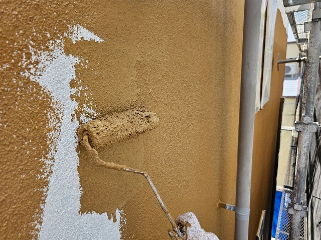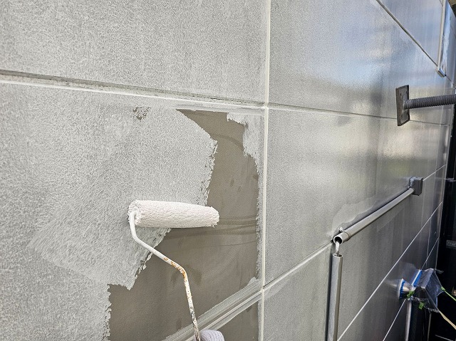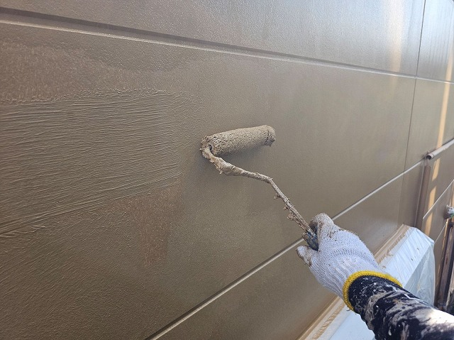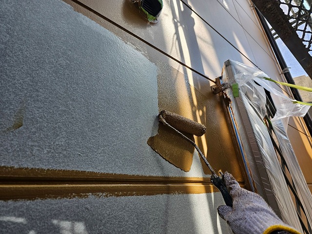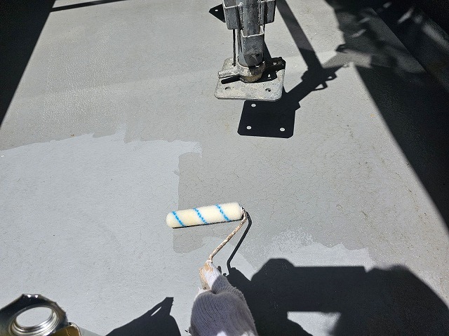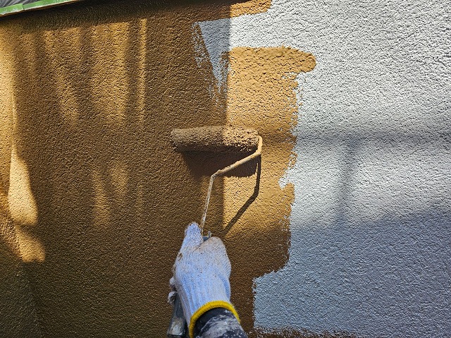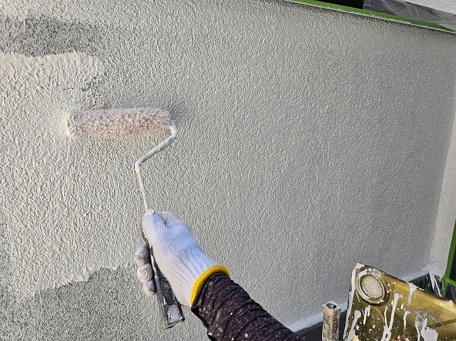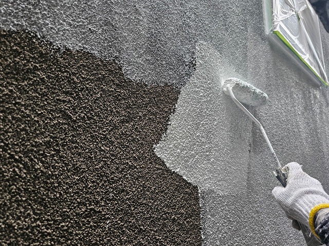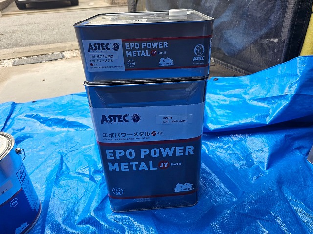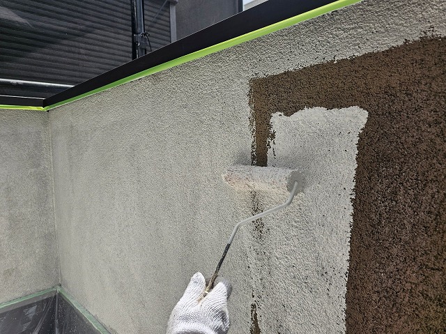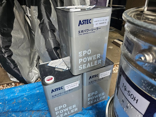 下塗り材「エポパワーシーラー」を塗布後、「ホワイトフィラーAⅡ」を塗布します。