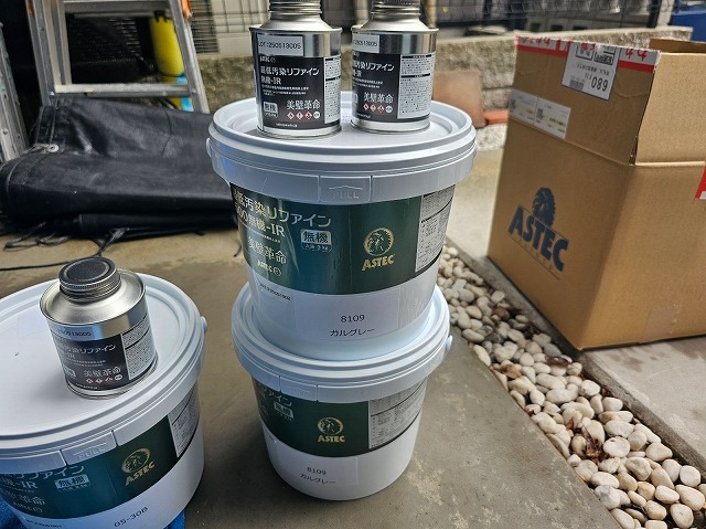 「超低汚染リファイン艶消1000MSーIR」で2回上塗りをして外壁塗装の完成です。