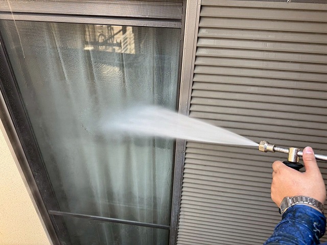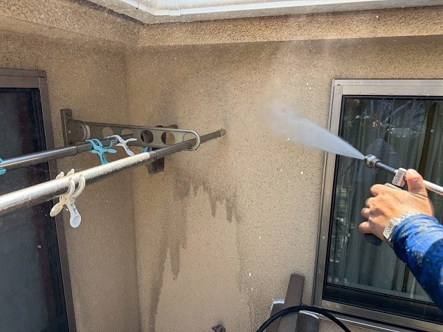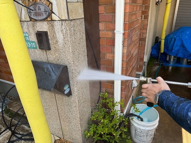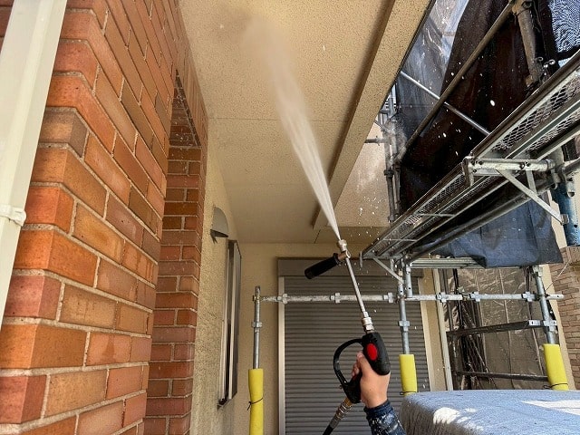 塗装工事のまず初めに、高圧洗浄を行います。
