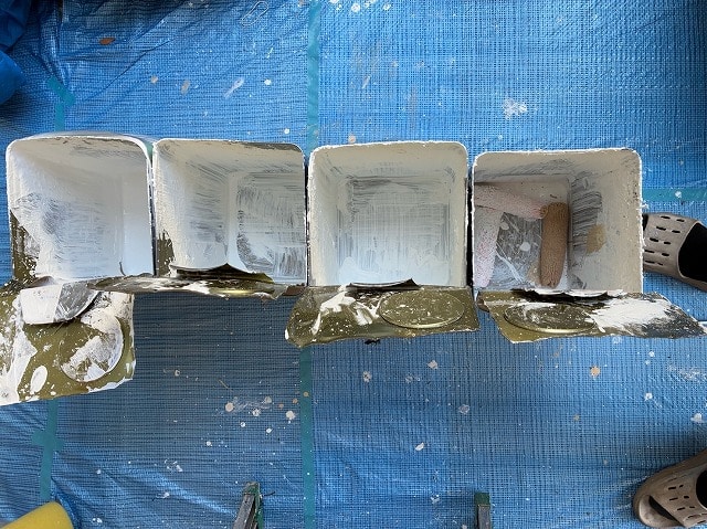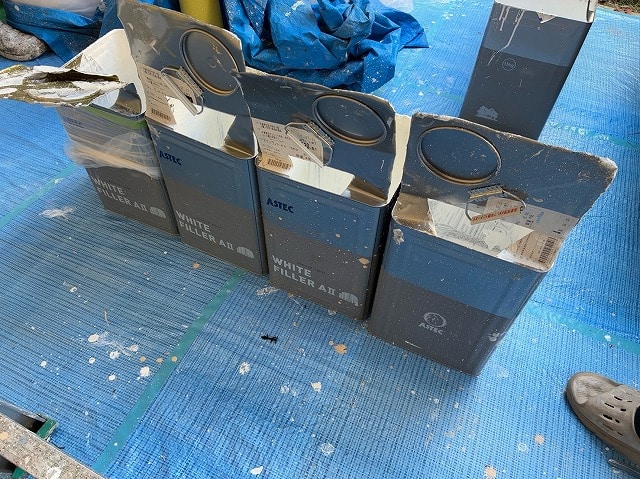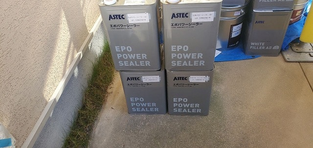 下塗り材「エポパワーシーラー」「ホワイトフィラーAⅡ」を塗布します。