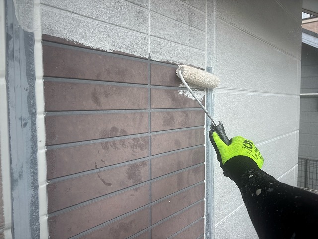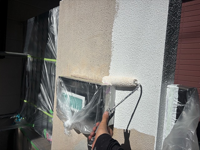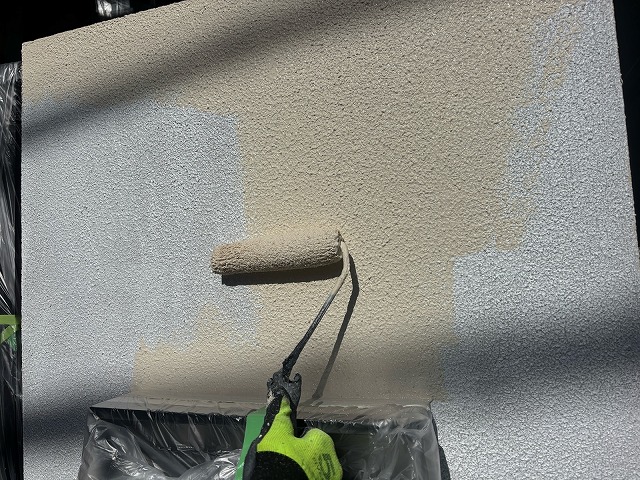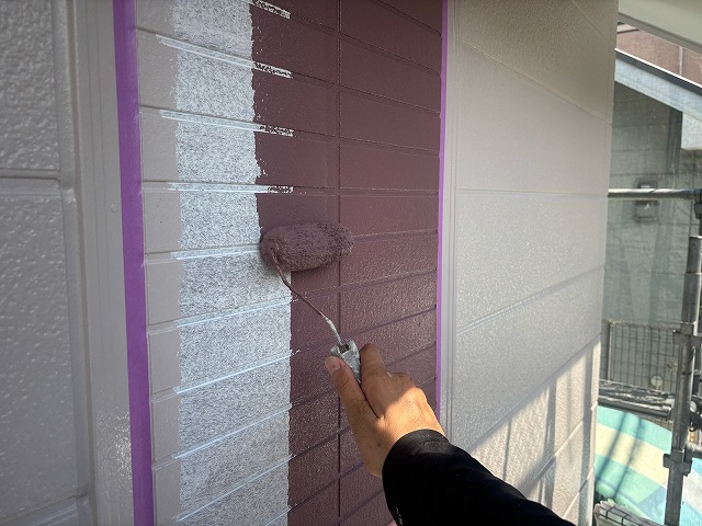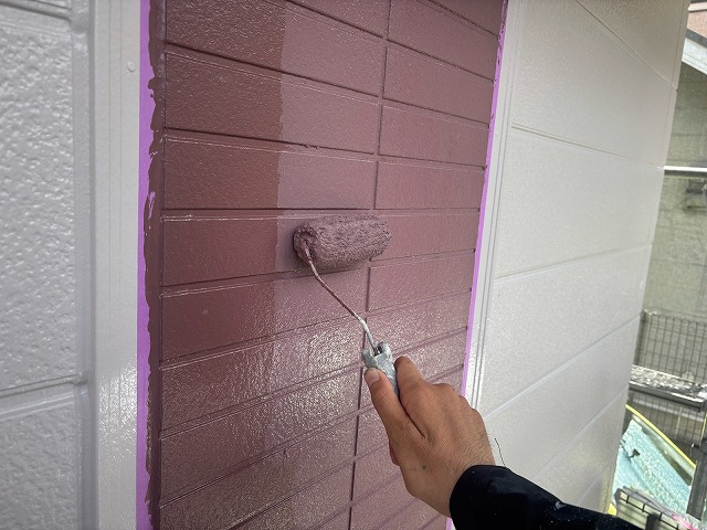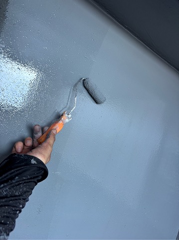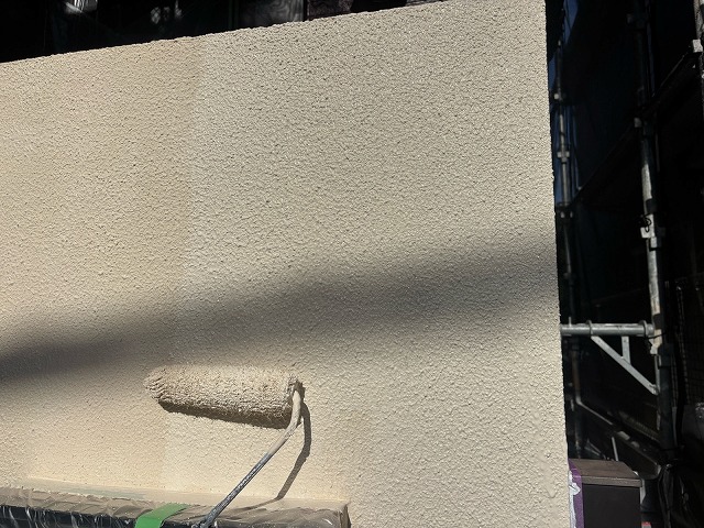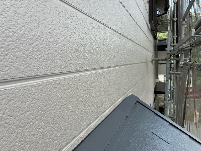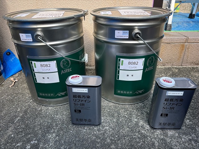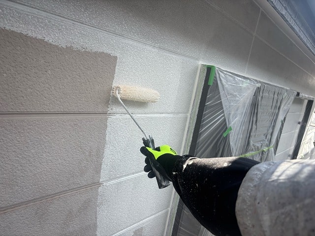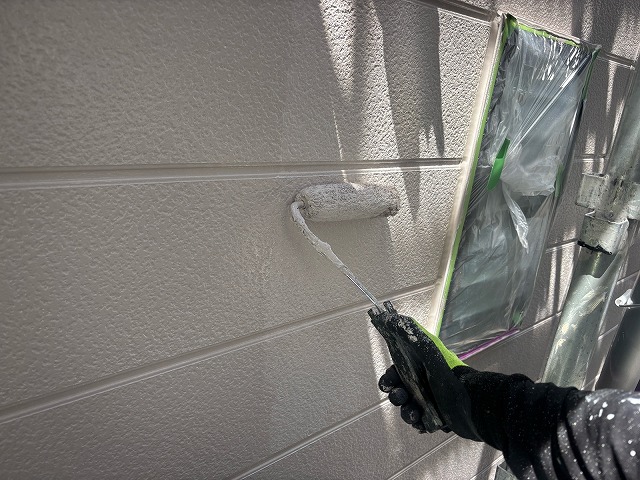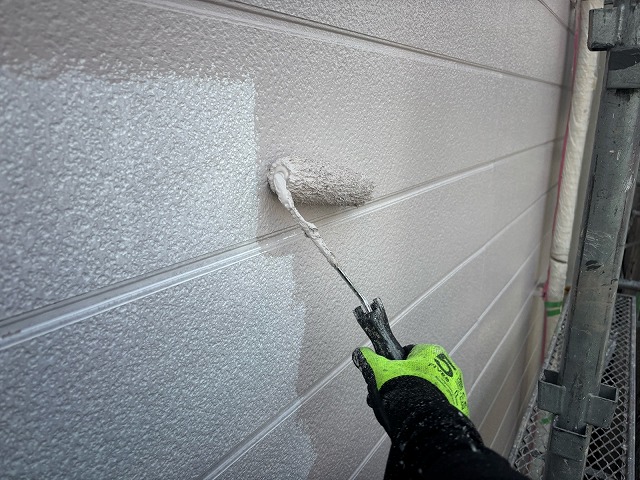 下塗り材乾燥後、「超低汚染リファイン500Si-IR」で中塗り、上塗りをして外壁塗装の完成です。