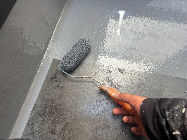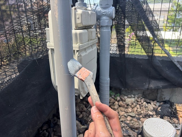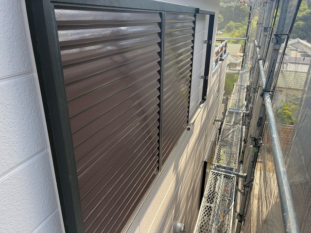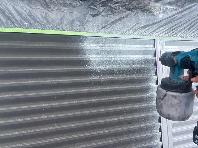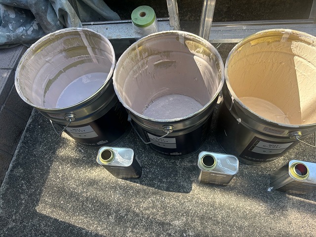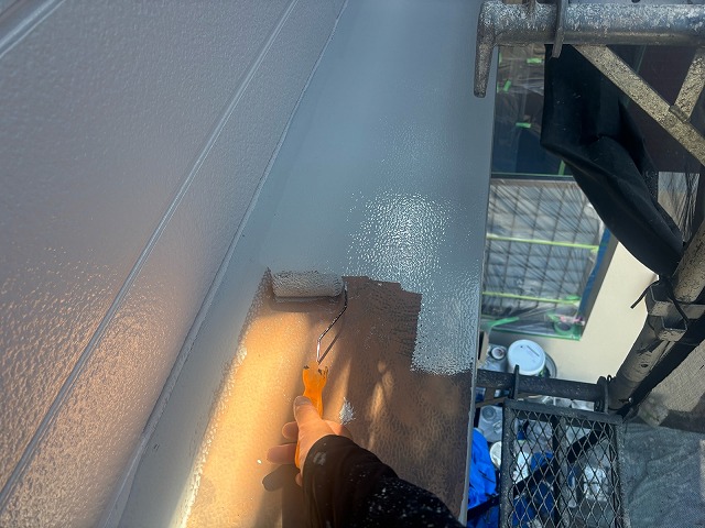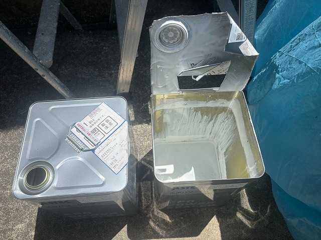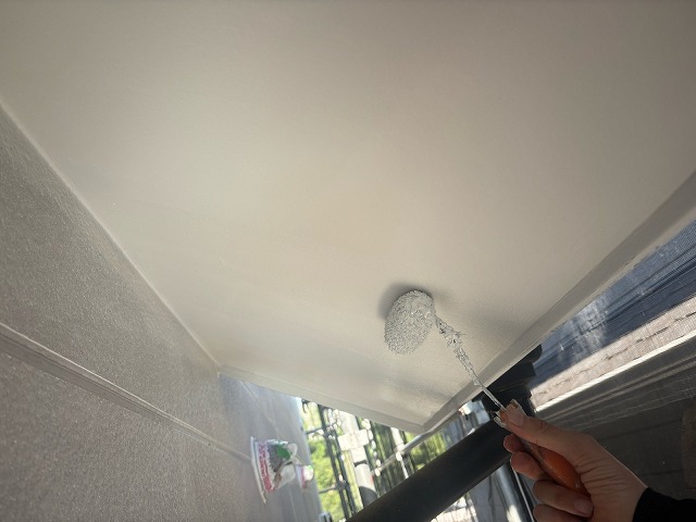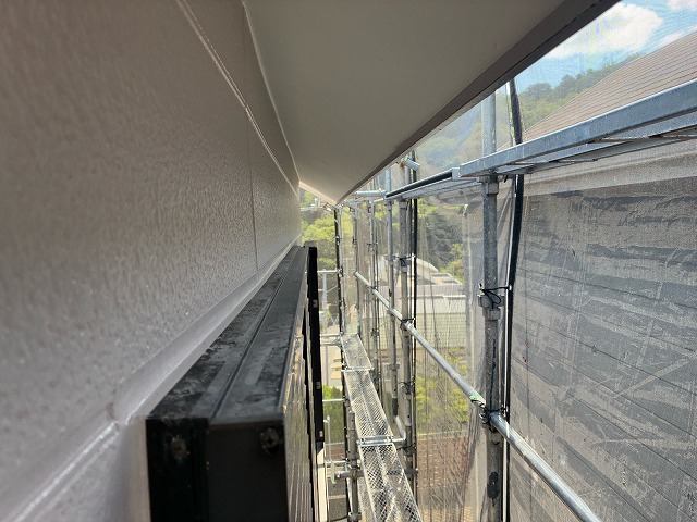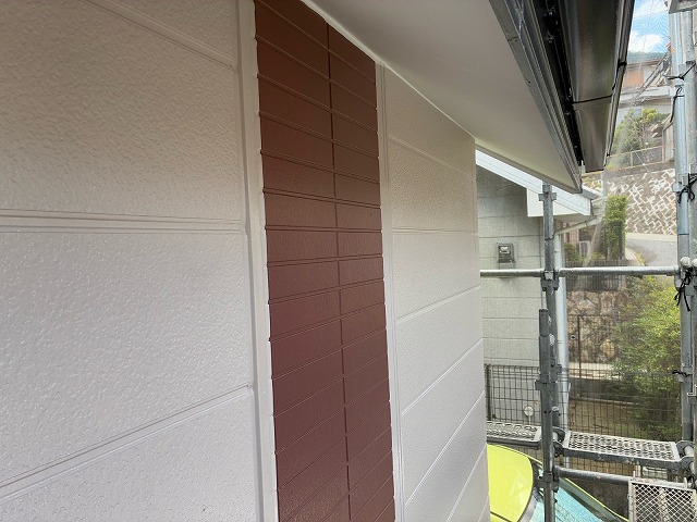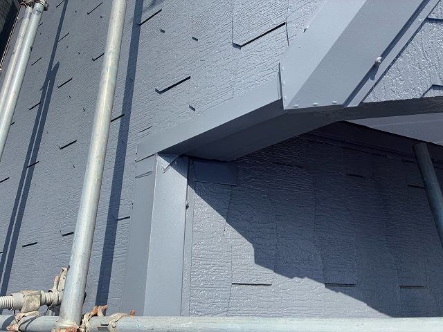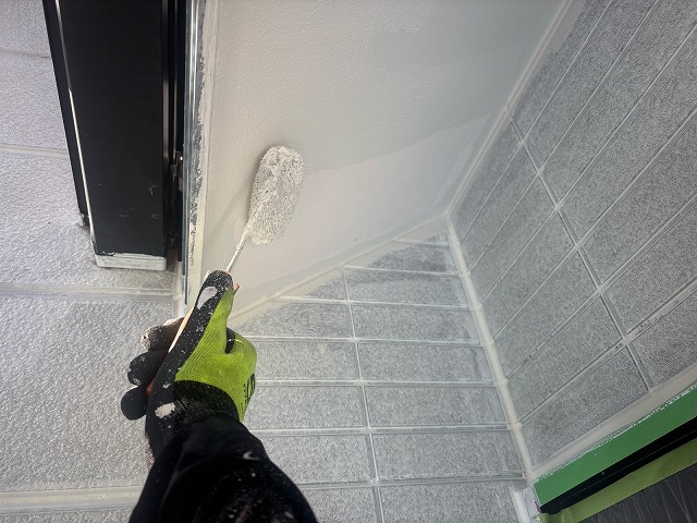 下塗り材乾燥後、「超低汚染リファイン500Si-IR」で中塗り、上塗りをして外壁塗装の完成です。