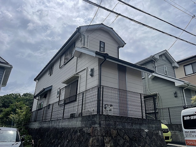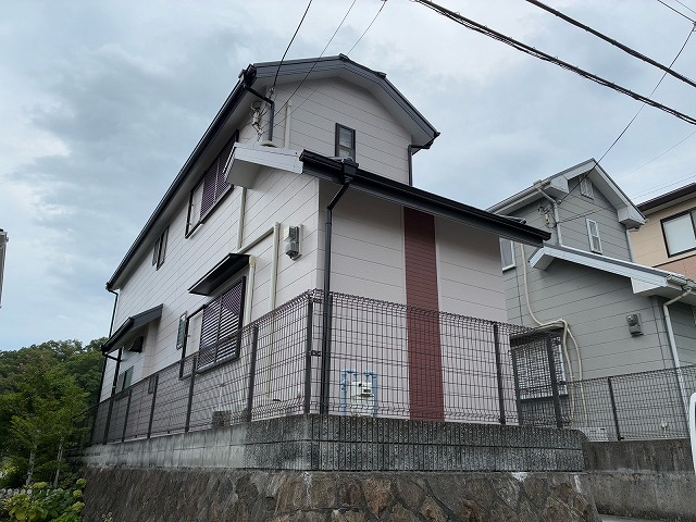 西宮市A様邸 「超低汚染プラチナリファイン2000Si-IR」8212ココアブラウン×8203ローズベージュで外壁塗装、「超低汚染リファイン500Si-IR」8082ニンバスで屋根塗装を行いました!