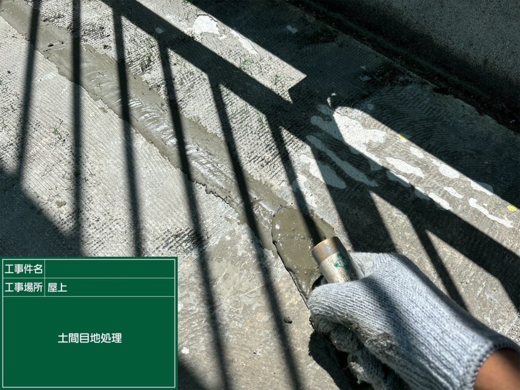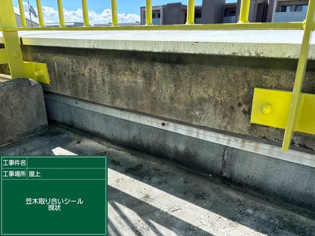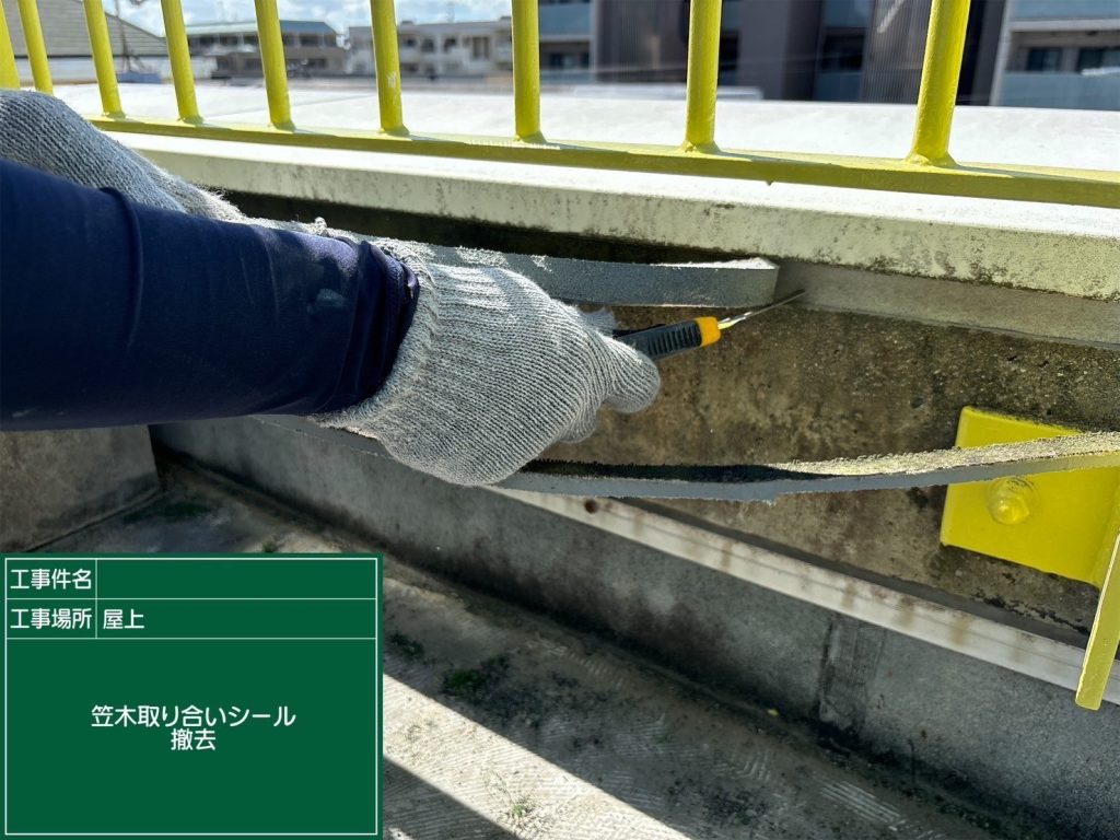 笠木との取合い部分にある古いシーリング材を撤去し、新たにシーリング材を充填します。雨水の侵入経路になりやすい箇所の防水性を確保することで、屋上全体の防水性能を安定させます。