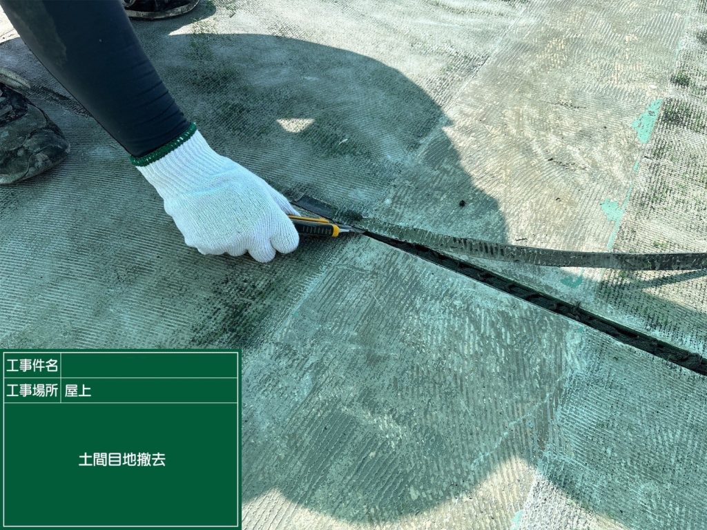 撤去した部分の下地をケレン(清掃・目荒し)します。ほこりや錆、古い接着残りを取り除き、下地の凹凸を整えることで、後のプライマーや防水層がしっかり密着する状態に整えます。