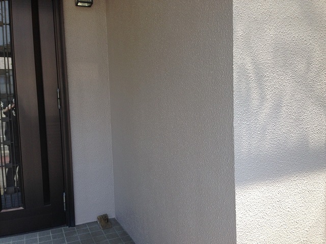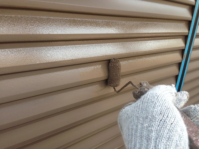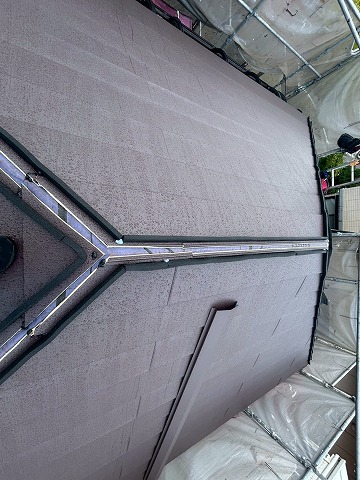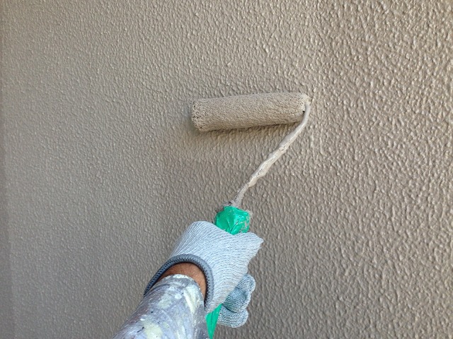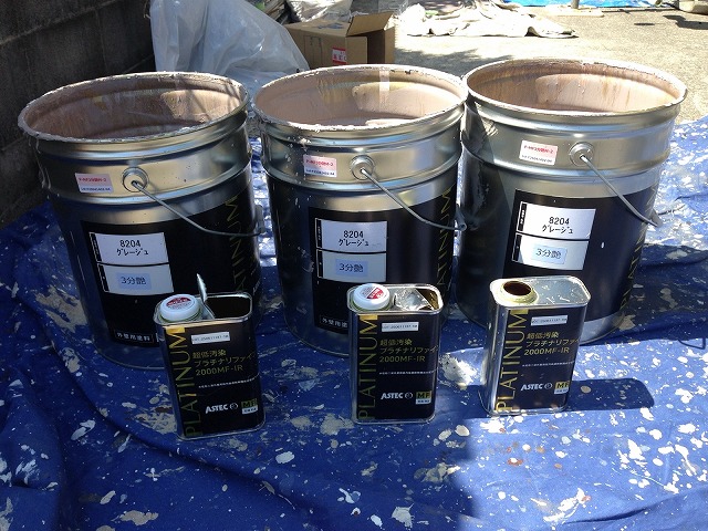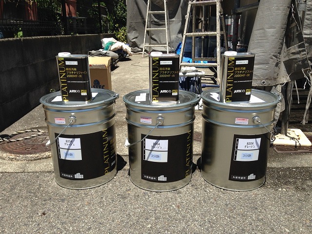 下塗り乾燥後、「超低汚染プラチナリファイン2000MF-IR」で中塗り、上塗りをして外壁塗装の完成です。