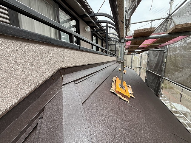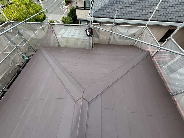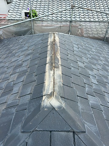 既存の屋根材はそのままにし、棟板金は撤去します。