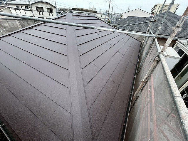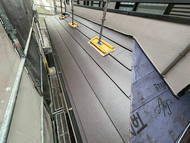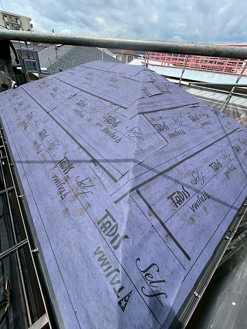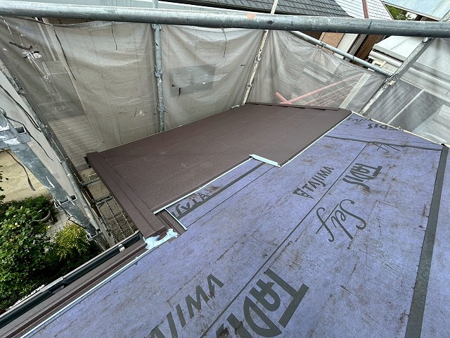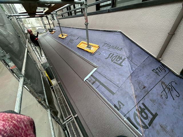 その上から防水シートを敷設し、新たな屋根材を設置していきます。