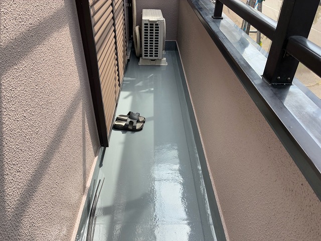 バルコニー部分も塗装工事と一緒に防水工事を行いました。
