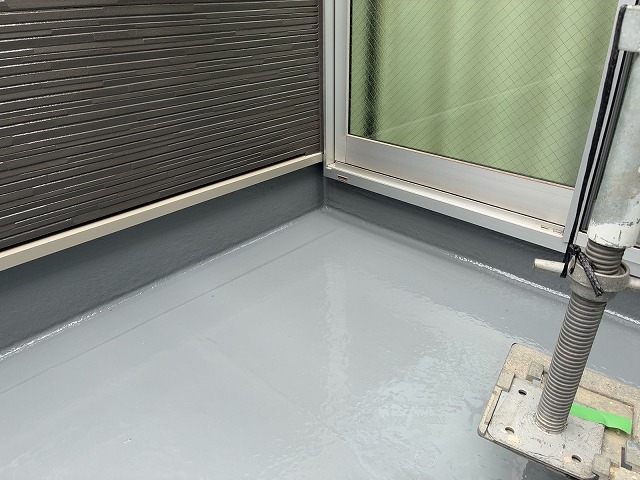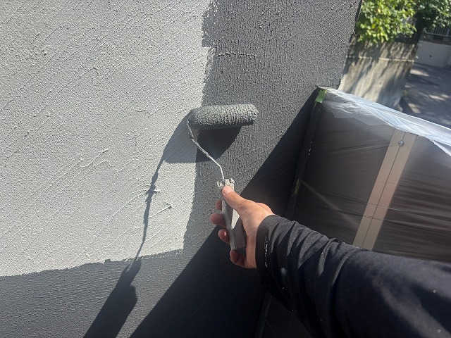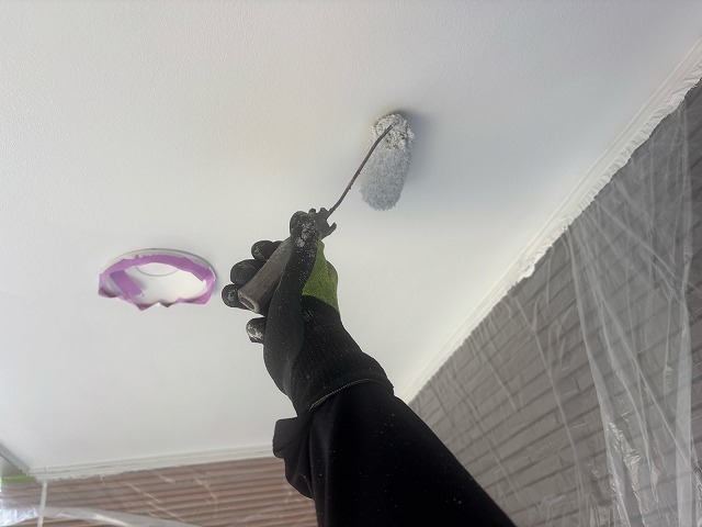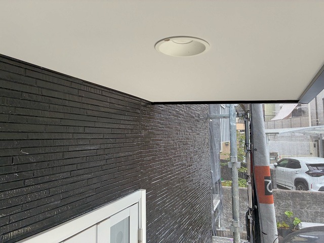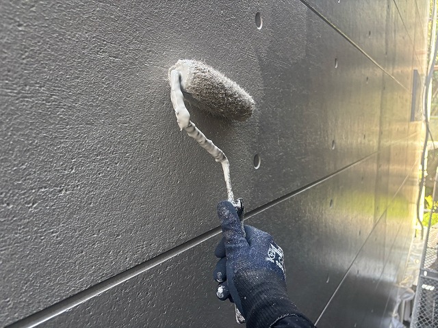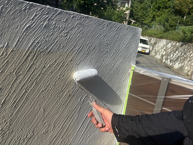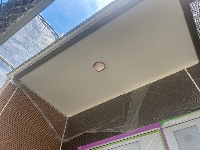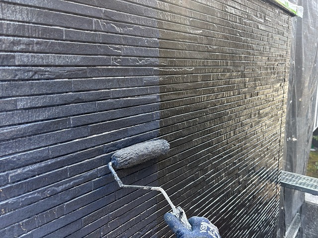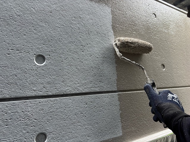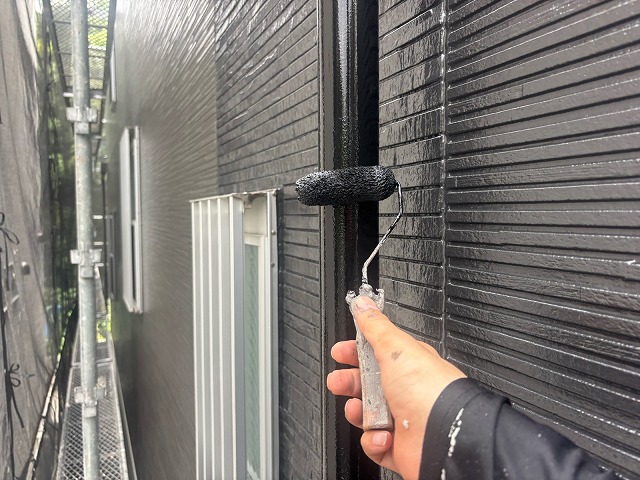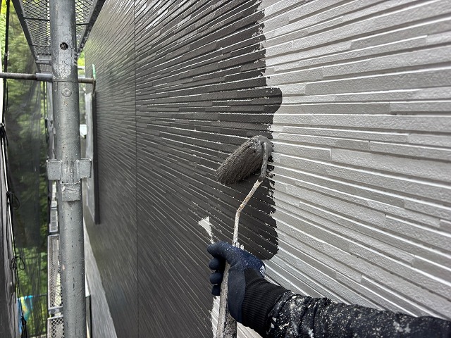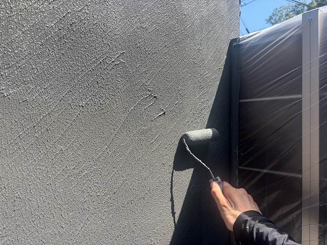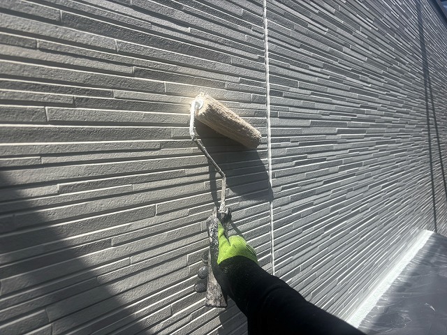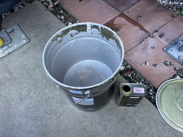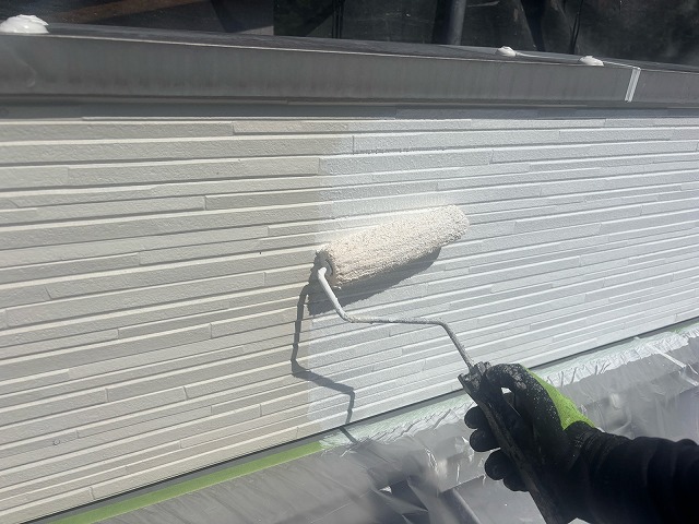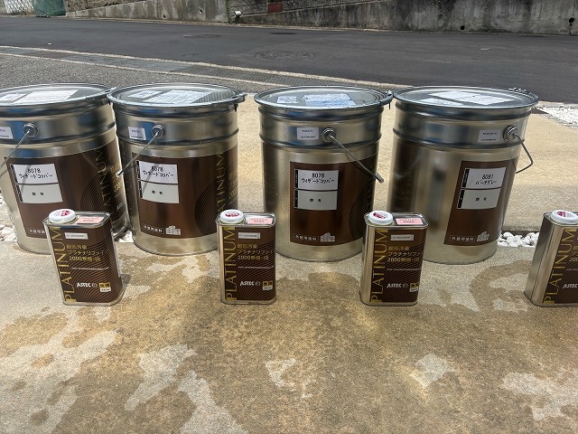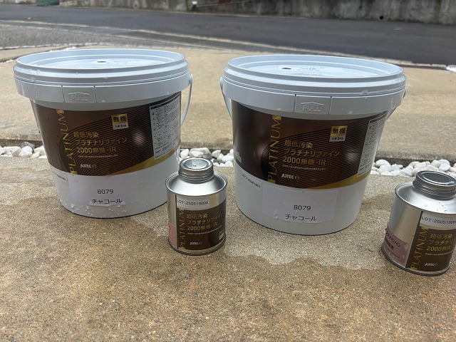 下塗り乾燥後、「超低汚染プラチナリファイン2000無機ーIR」で中塗り、上塗りをして外壁塗装の完成です。