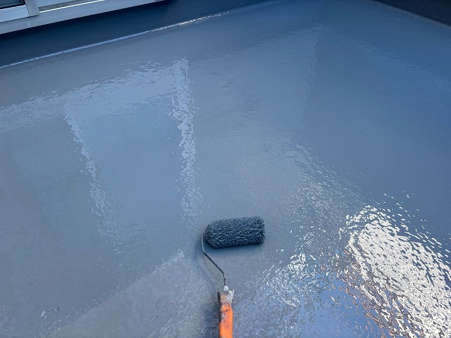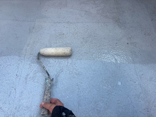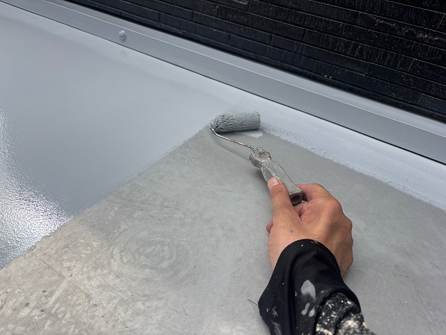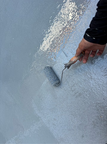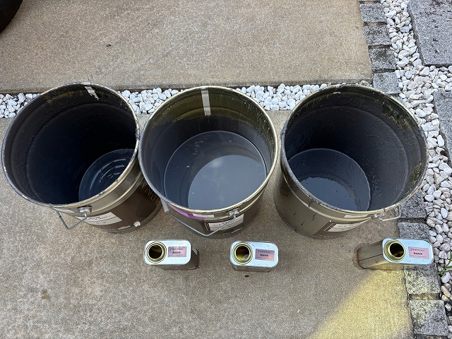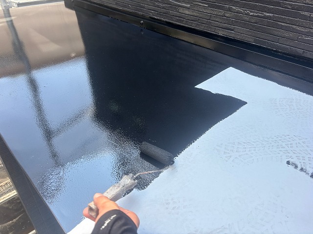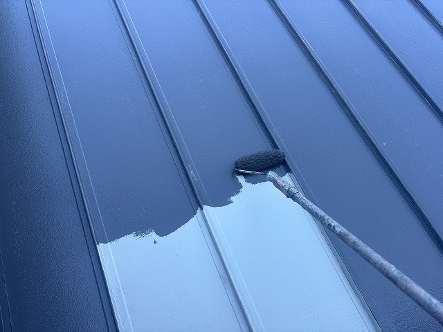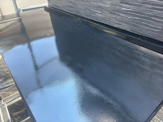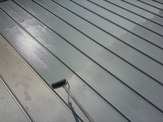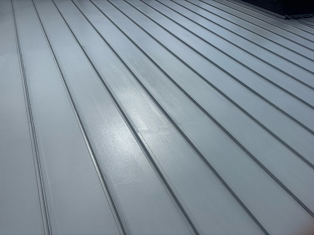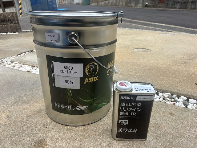 下塗り乾燥後、「超低汚染リファイン500無機-IR000無機ーIR」で中塗り、上塗りをして屋根塗装の完成です。