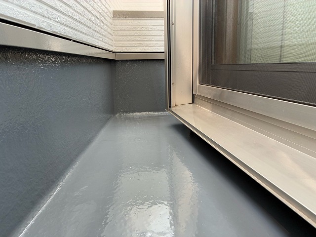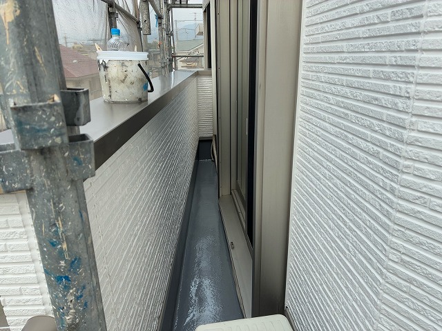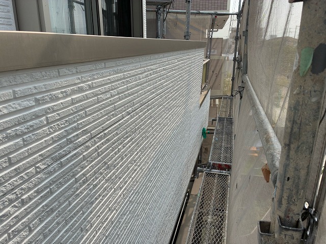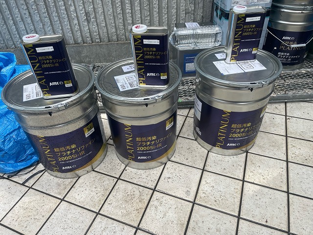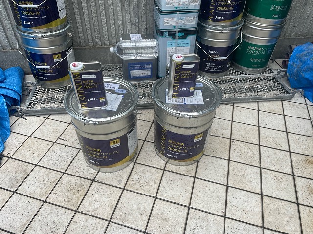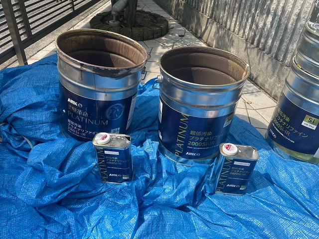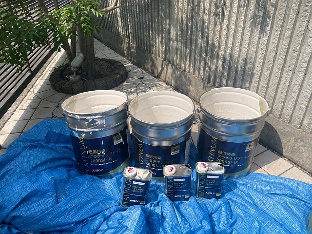 下塗り材乾燥後、「超低汚染プラチナリファイン2000Si-IR」で中塗り、上塗りをして外壁塗装の完成です。