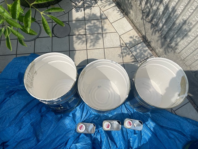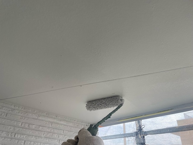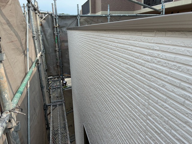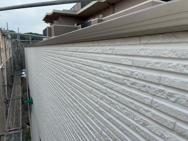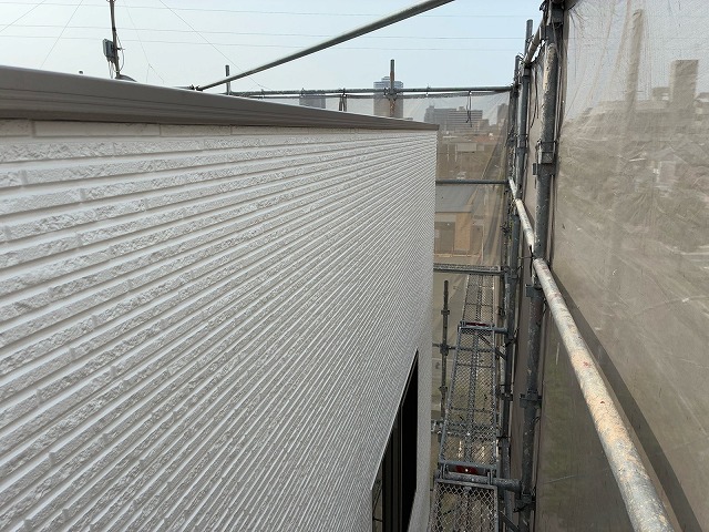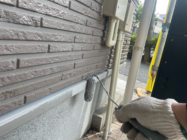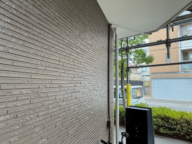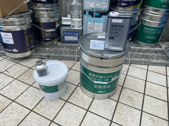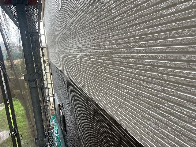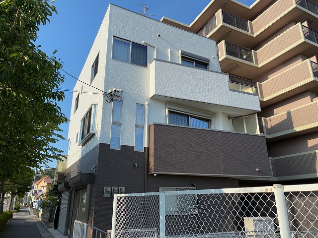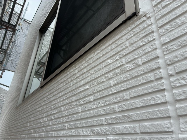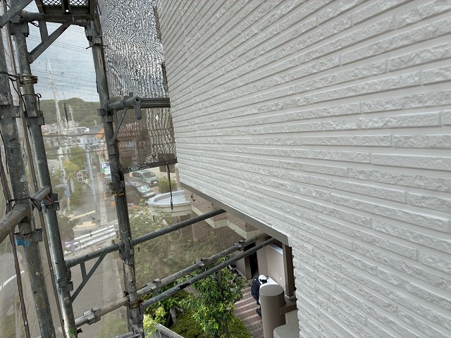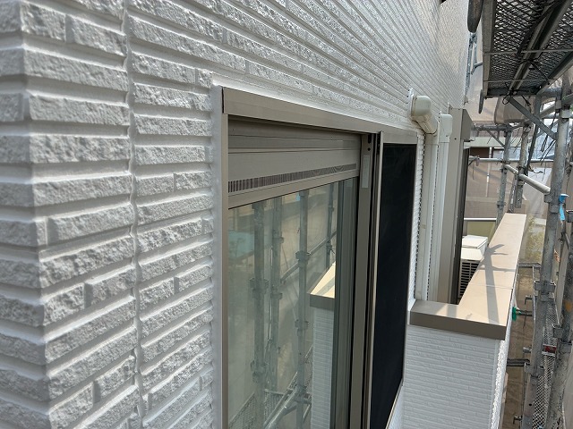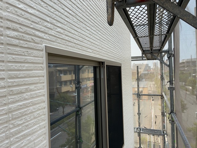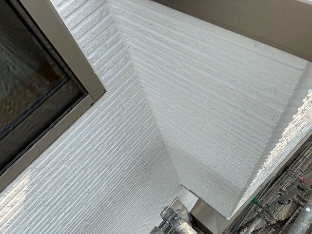 下塗り材乾燥後、「超低汚染リファイン500Si-IR」で中塗り、上塗りをして外壁塗装の完成です。