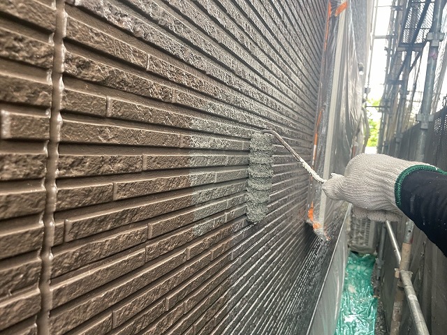 下塗り材「プレミアムSSシーラープライマー」を塗布します。