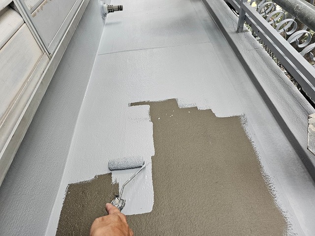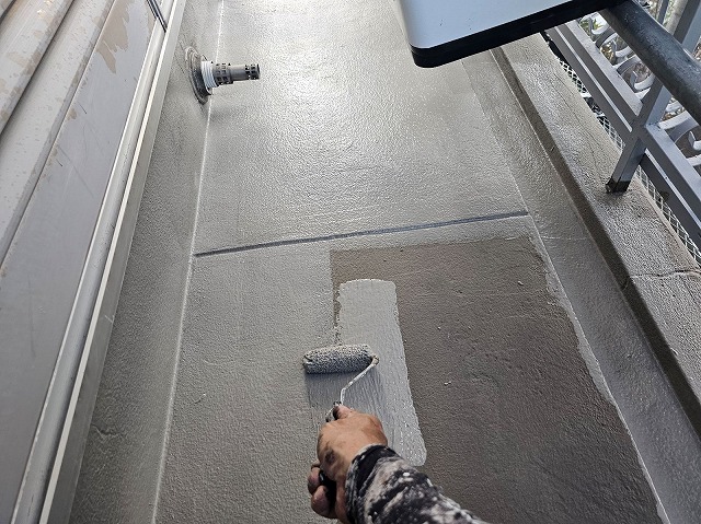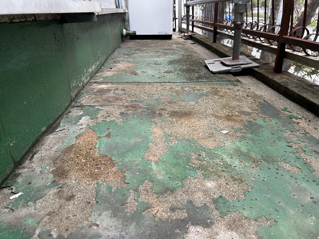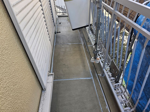 バルコニーも防水性能が切れていたので、メンテナンスを行いました。