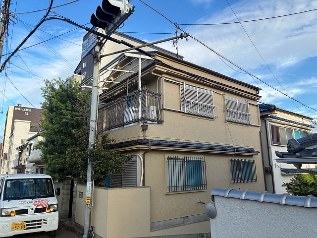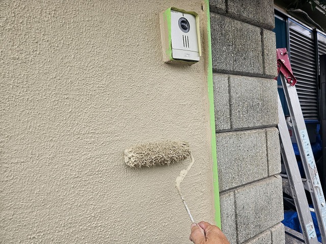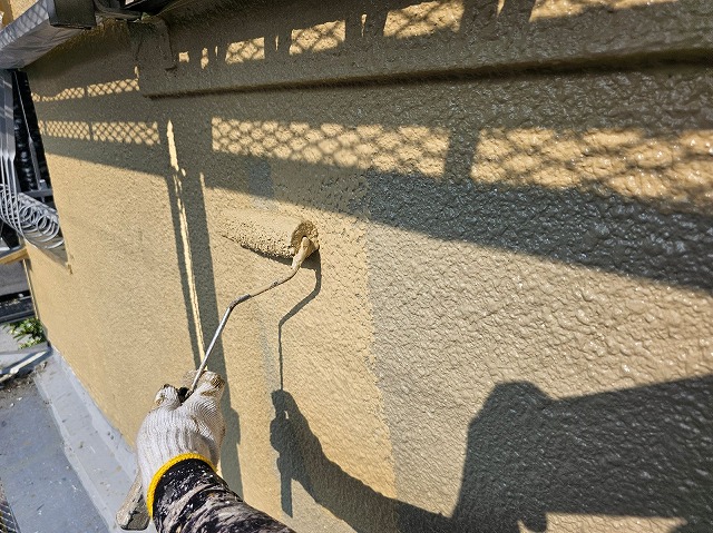 下塗り乾燥後、「スーパーラジカルシリコンGH」で中塗り、上塗りをして外壁塗装の完成です。