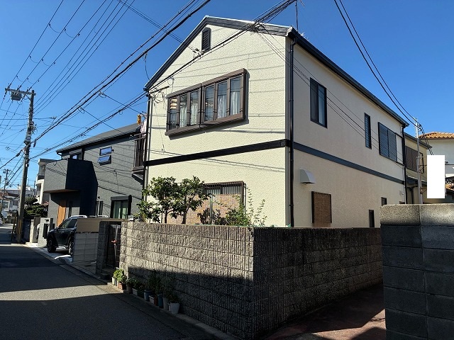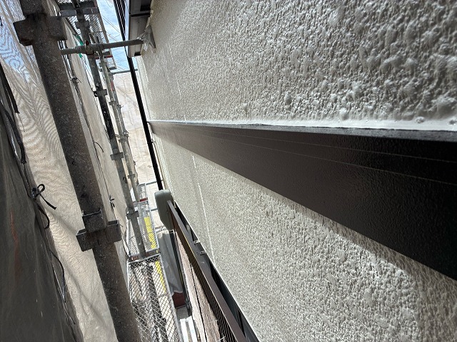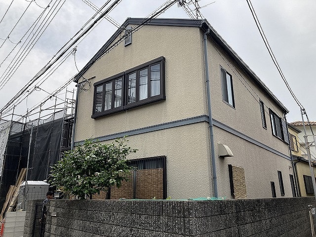 下塗り乾燥後、「スーパーラジカルシリコンGH」で中塗り、上塗りをして外壁塗装の完成です。