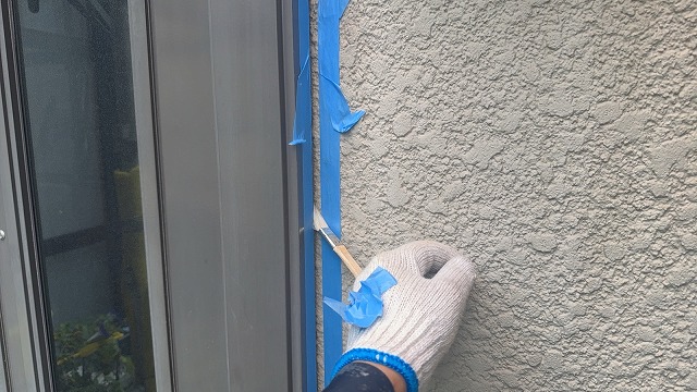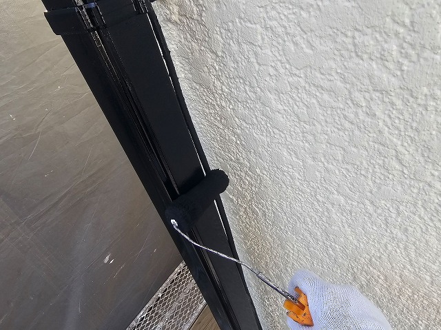 サッシ廻りや換気フード廻りなど、建物の窓枠や換気口周辺の隙間に施されている古いコーキング(シーリング材)を撤去し、新しいコーキング材に打ち替える作業です。これにより、雨水や風の侵入を防ぎ、建物内部の水害や劣化を防ぐとともに、外壁とサッシ・換気フードとの接合部の耐久性と気密性を向上させます。