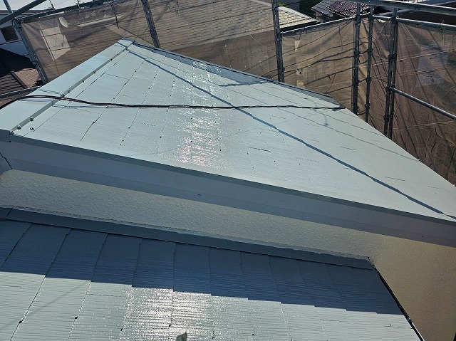 その後、「スーパーシャネツサーモSi」で中塗り、上塗りをして屋根塗装の完成です。