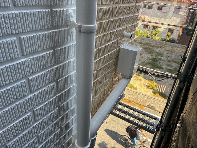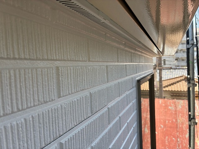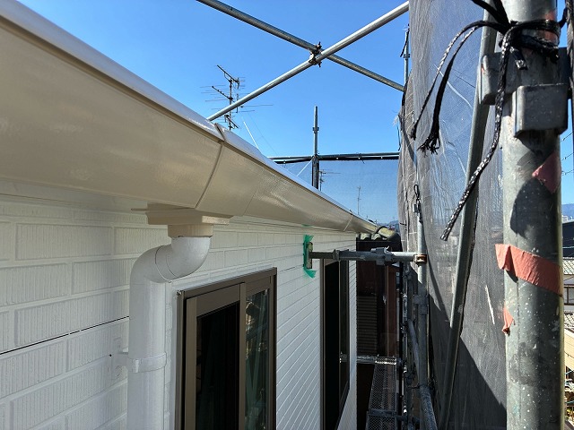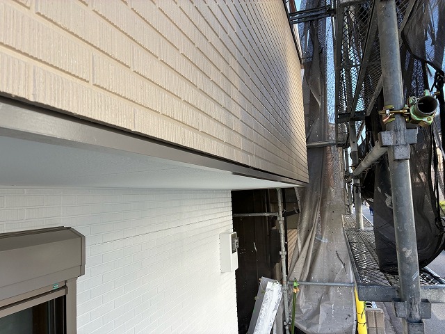 雨樋や破風板、鼻隠し、水切りなどの付帯部分を丁寧に塗装し、建物全体の美観を整えるとともに、耐久性を向上させる仕上げ工程です。