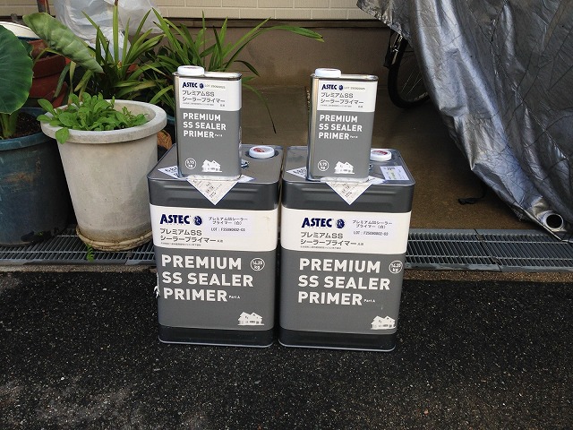 下塗り材「プレミアムSSシーラープライマー」を塗布します。