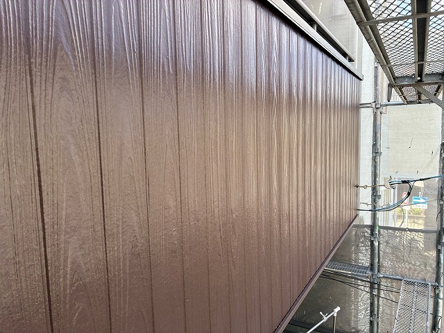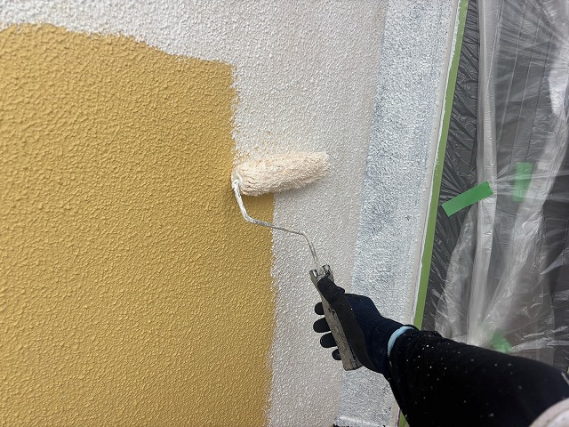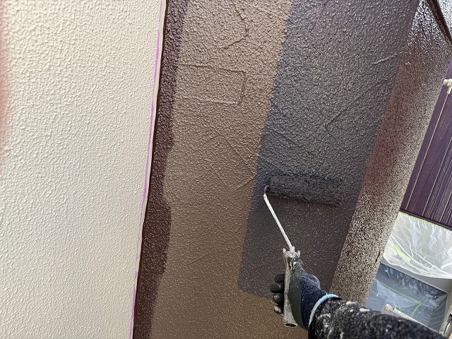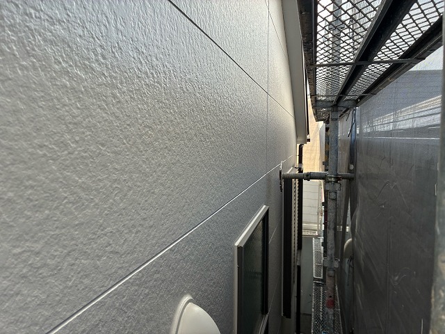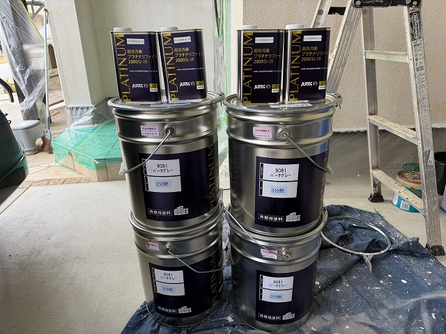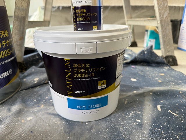 下塗り材乾燥後、「超低汚染プラチナリファイン2000Si-IR」で中塗り、上塗りをして外壁塗装の完成です。