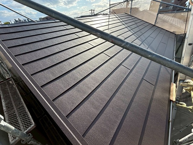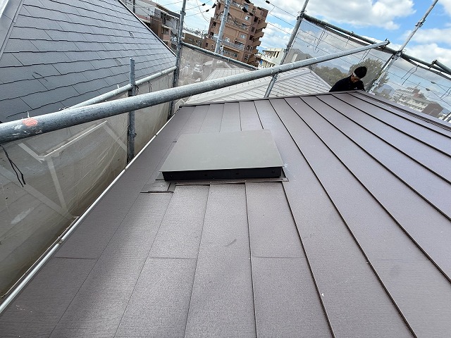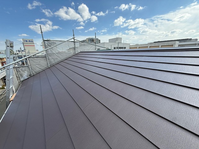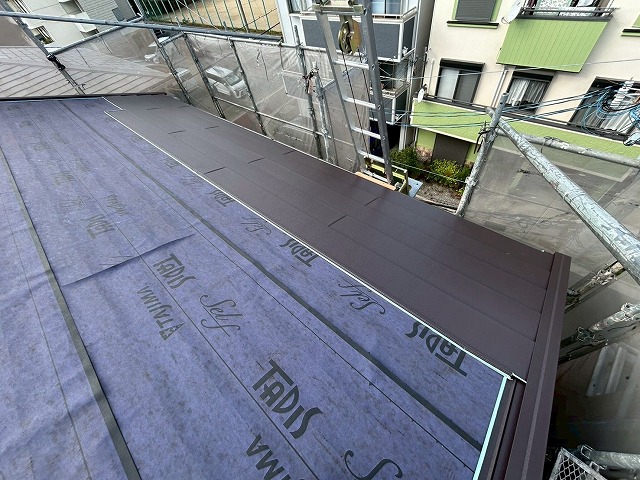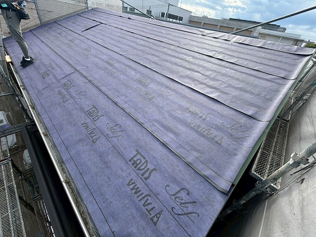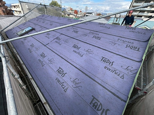 屋根カバー工事は劣化した既存の屋根材の上から防水シートを張り、新たに屋根材を敷設していきます。