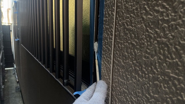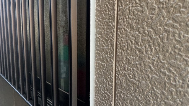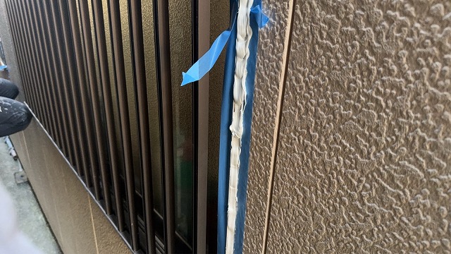 外壁の目地やサッシ周辺にある、劣化した既存のコーキング材を撤去します。