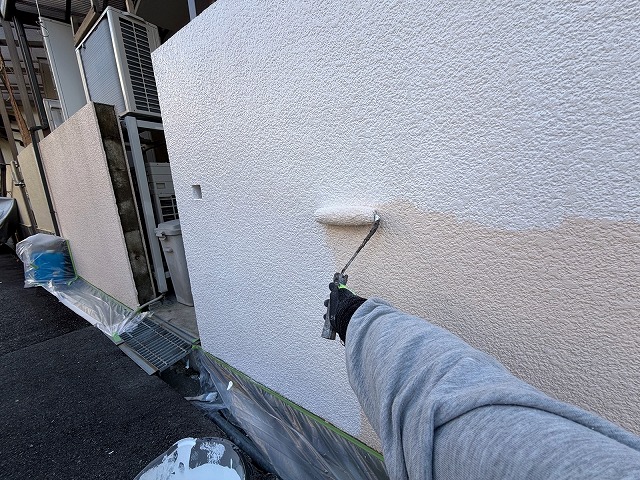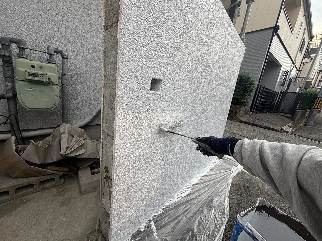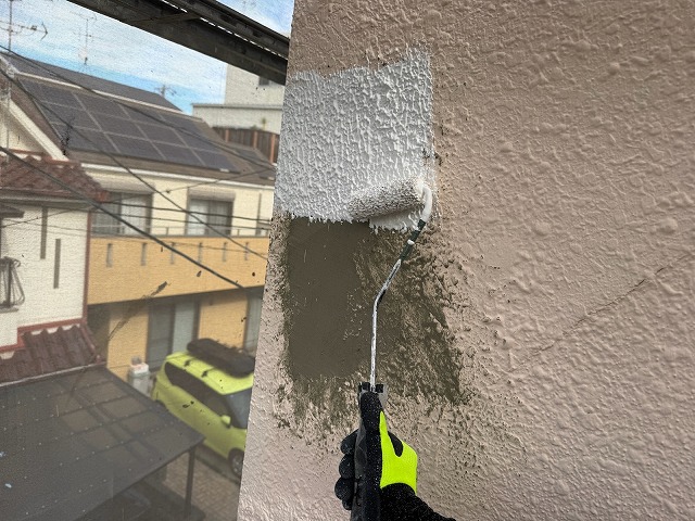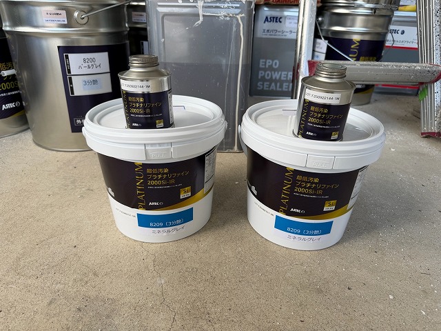 下塗り材「エポパワーシーラー」「ホワイトフィラーAⅡ」を塗布します。
