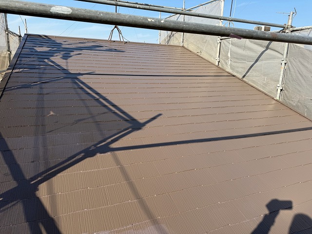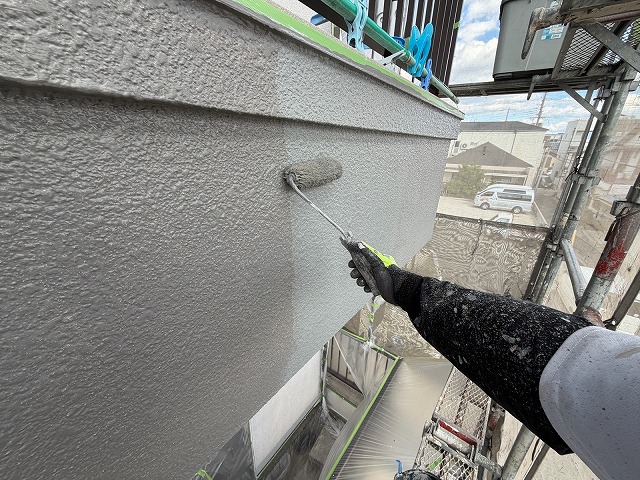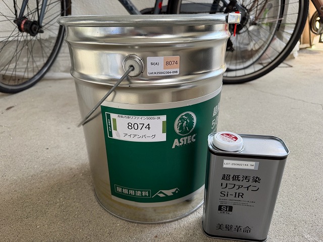 下塗り材乾燥後、「超低汚染リファイン500Si-IR」で中塗り、上塗りをして外壁塗装の完成です。