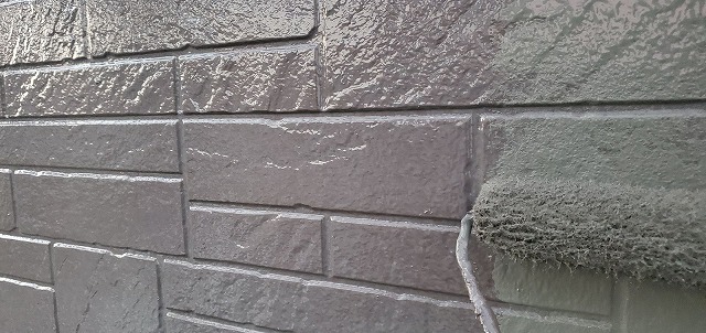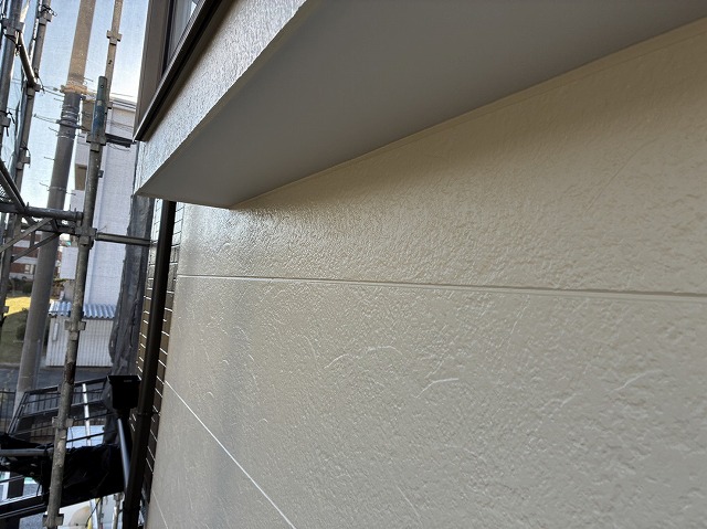 下塗り乾燥後、「超低汚染プラチナリファイン2000MF-IR」で中塗り、上塗りをして外壁塗装の完成です。