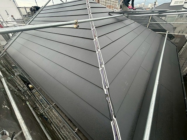 今回はアイジー工業のスーパーガルテクトで屋根カバーを施工しました。
