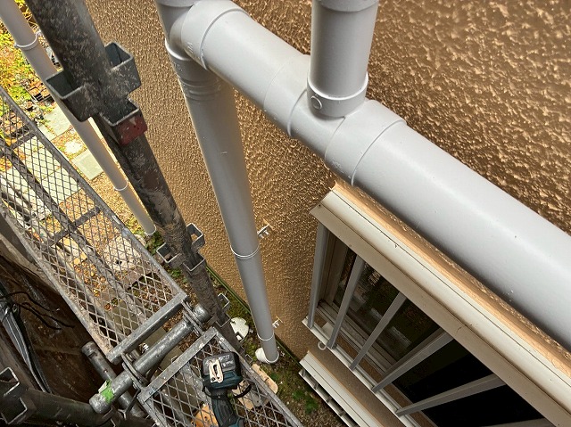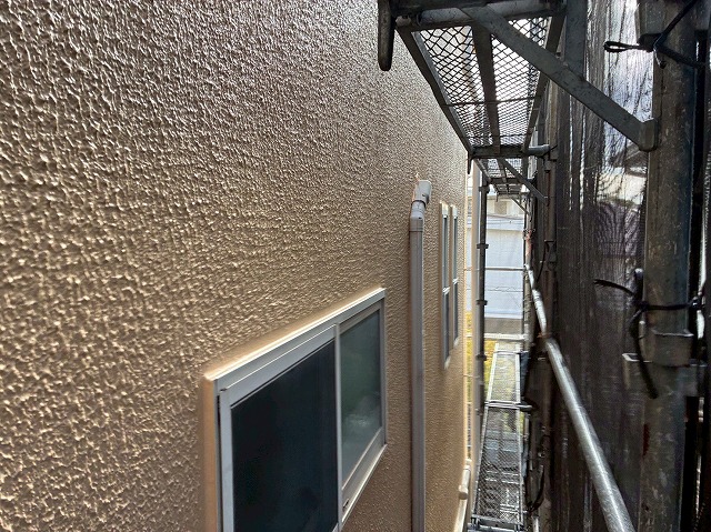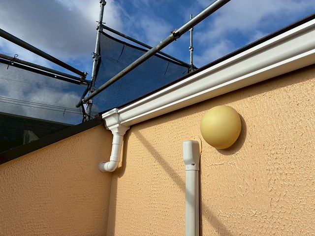 雨樋や破風板、鼻隠し、水切りなどの付帯部分を丁寧に塗装し、建物全体の美観を整えるとともに、耐久性を向上させる仕上げ工程です。