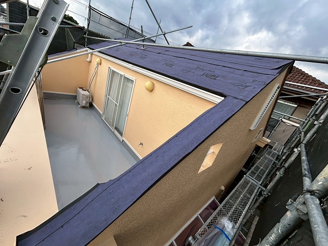 屋根カバー工事は、既存の屋根を撤去せず、その上から防水シートを敷き、新しい屋根材を重ねる工法。撤去費用や廃材処分費が抑えられるため、葺き替え工事に比べてコストを抑えやすいのが特徴です。また、工期が短く、工事中の騒音やホコリが少ない点も、多くの方に選ばれている理由のひとつです。