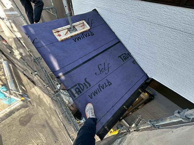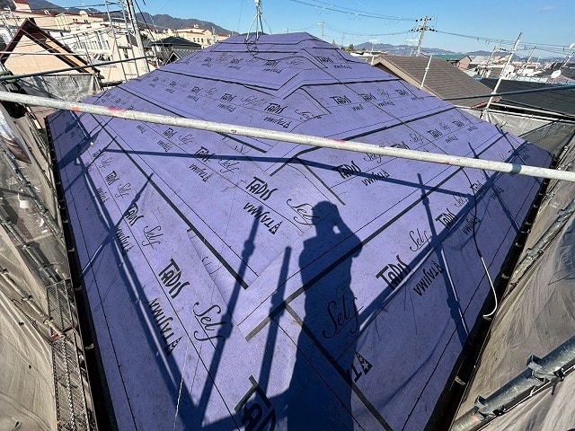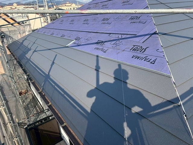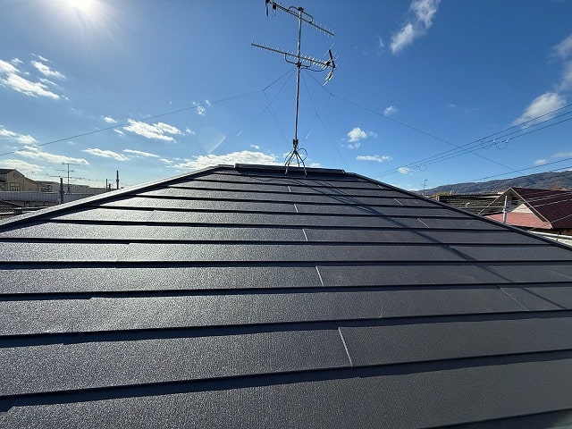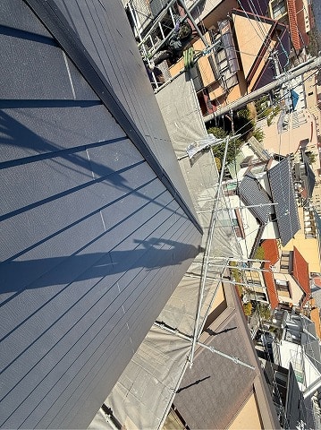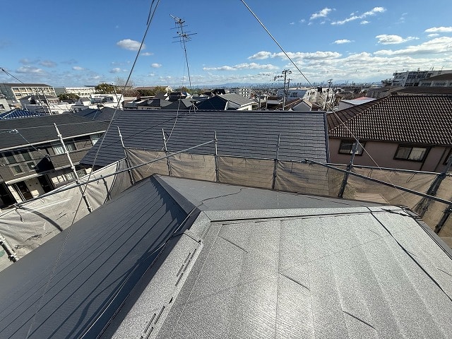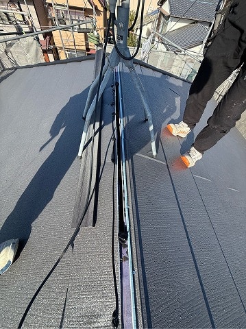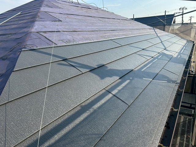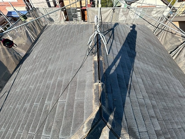 その後、新たに屋根材を設置し、棟板金を戻して完了です。