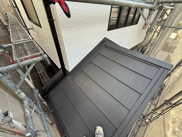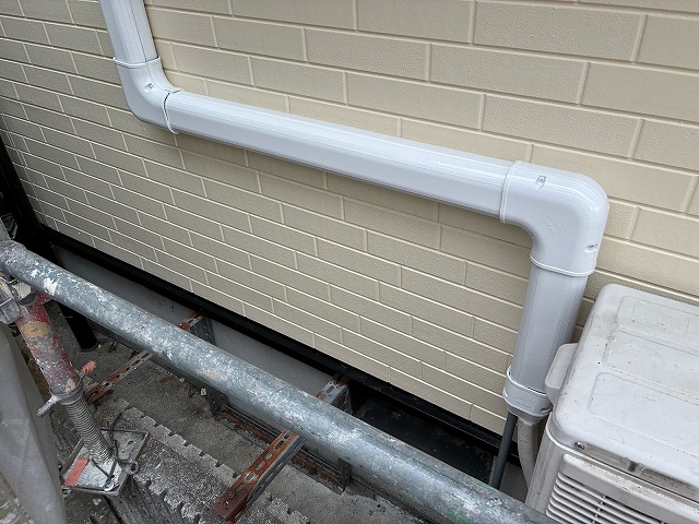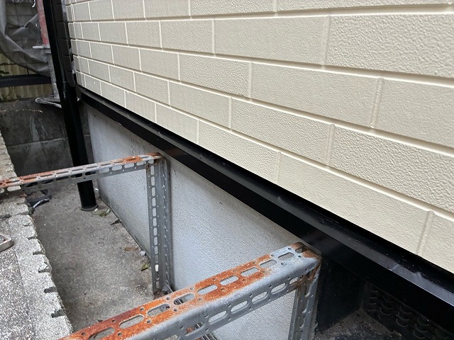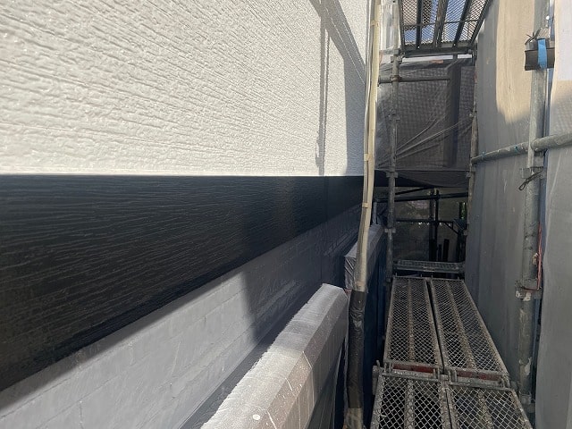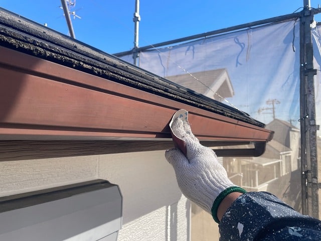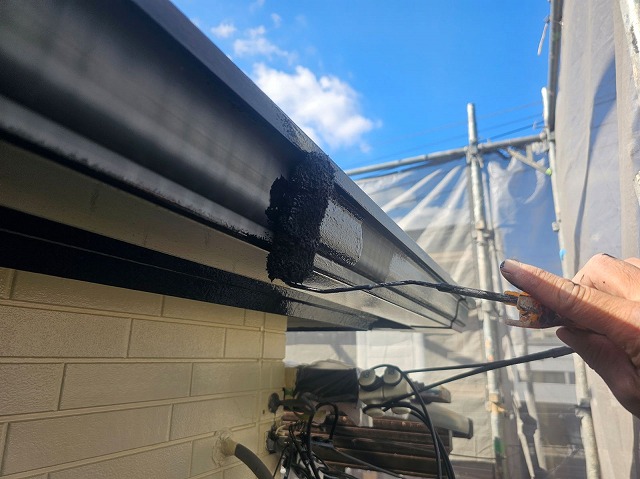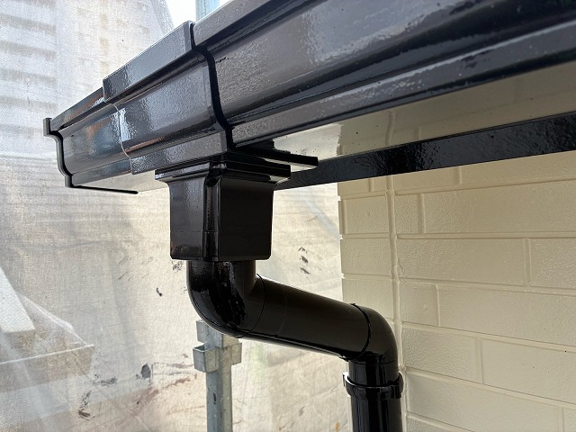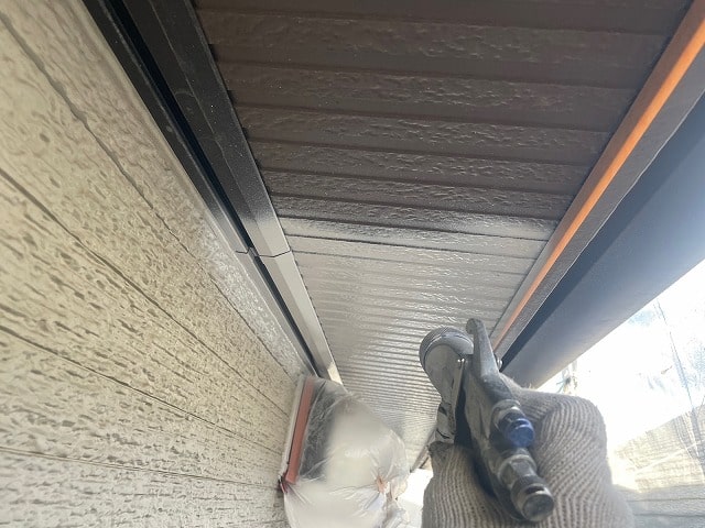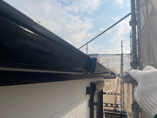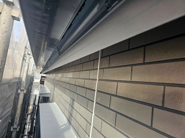 雨樋や破風、鼻隠し、水切りなどの付帯部分にも塗装を行い、外観全体のバランスを整えていきます。こうした細かな部位は面積こそ大きくありませんが、仕上がりの印象を左右する重要なポイントです。