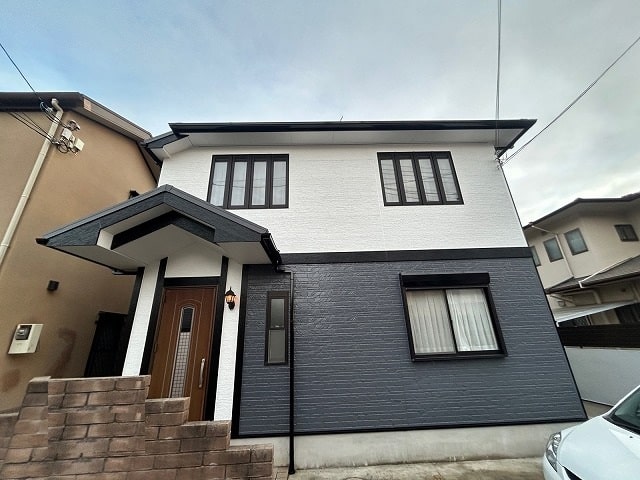 西宮市M様邸 「超低汚染プラチナリファイン2000MF-IR」8113トゥルーホワイト×8082ニンバスで外壁塗装、屋根はアイジー工業のスーパーガルテクトでカバー工法を行いました!