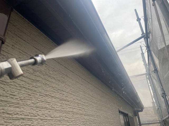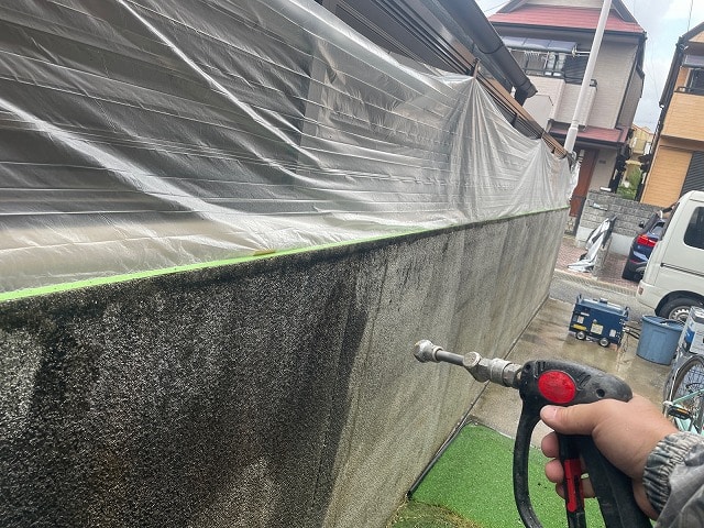 この工程が不十分なまま塗装を行うと、どんなに良い塗料を使用しても本来の性能を発揮できず、早期の剥離や膨れにつながる恐れがあります。だからこそ当社では、塗る前の準備工程を非常に重要な作業と考え、外壁の状態を確認しながら丁寧に洗浄を行っています。下地を整えることが、仕上がりの美しさと塗装の持ちを左右する大切なポイントです。
