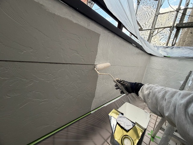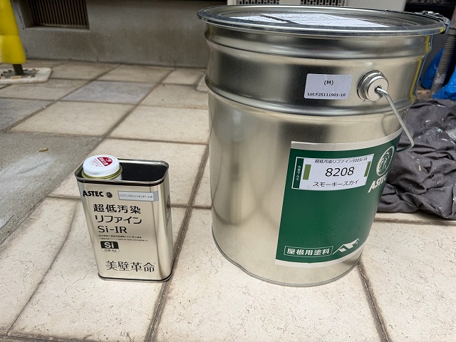 下塗り材乾燥後、「超低汚染リファイン500Si-IR」で中塗り、上塗りをして外壁塗装の完成です。