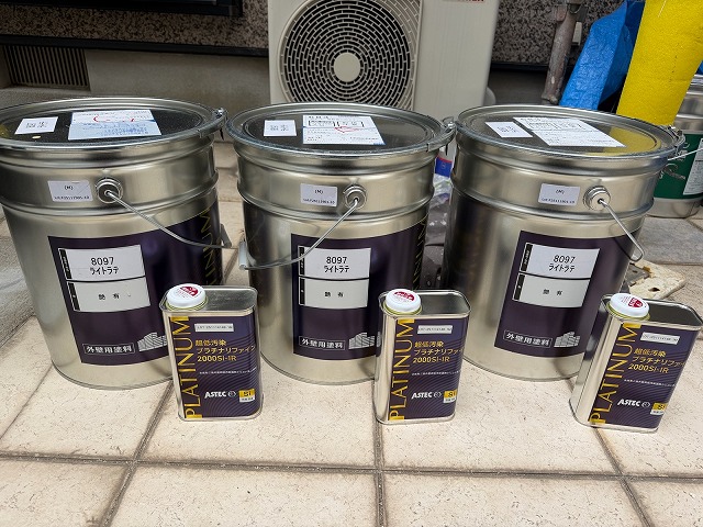 下塗り材乾燥後、「超低汚染プラチナリファイン2000Si-IR」で中塗り、上塗りをして外壁塗装の完成です。
