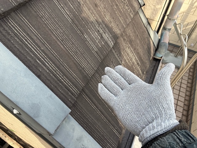 ・屋根に色あせやコケが見える